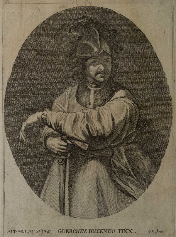 - Description: Original print by the Viennese artist Anton Joseph von Prenner (1683-1761). Inscribed and signed below the image “ALT: 48. LAT: 36. UNC. / GUERCHIN. DUCENDO. PINX. / V.P. Inci:”.