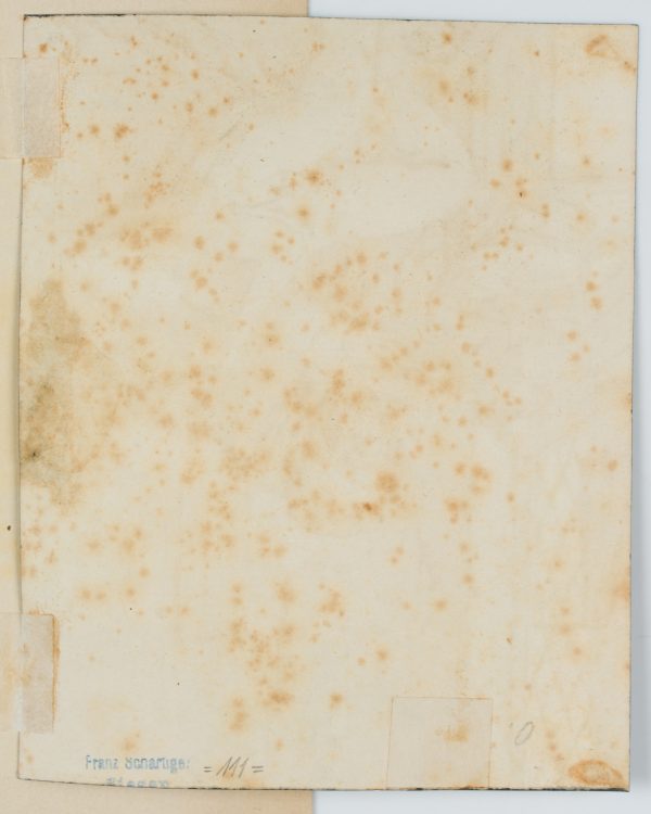 - Zustand: Guter Zustand. Vereinzelt sind leichte Stockflecken erkennbar. Oben rechts restaurierter Randeinriss. Feine Quetschfalte links mittig.