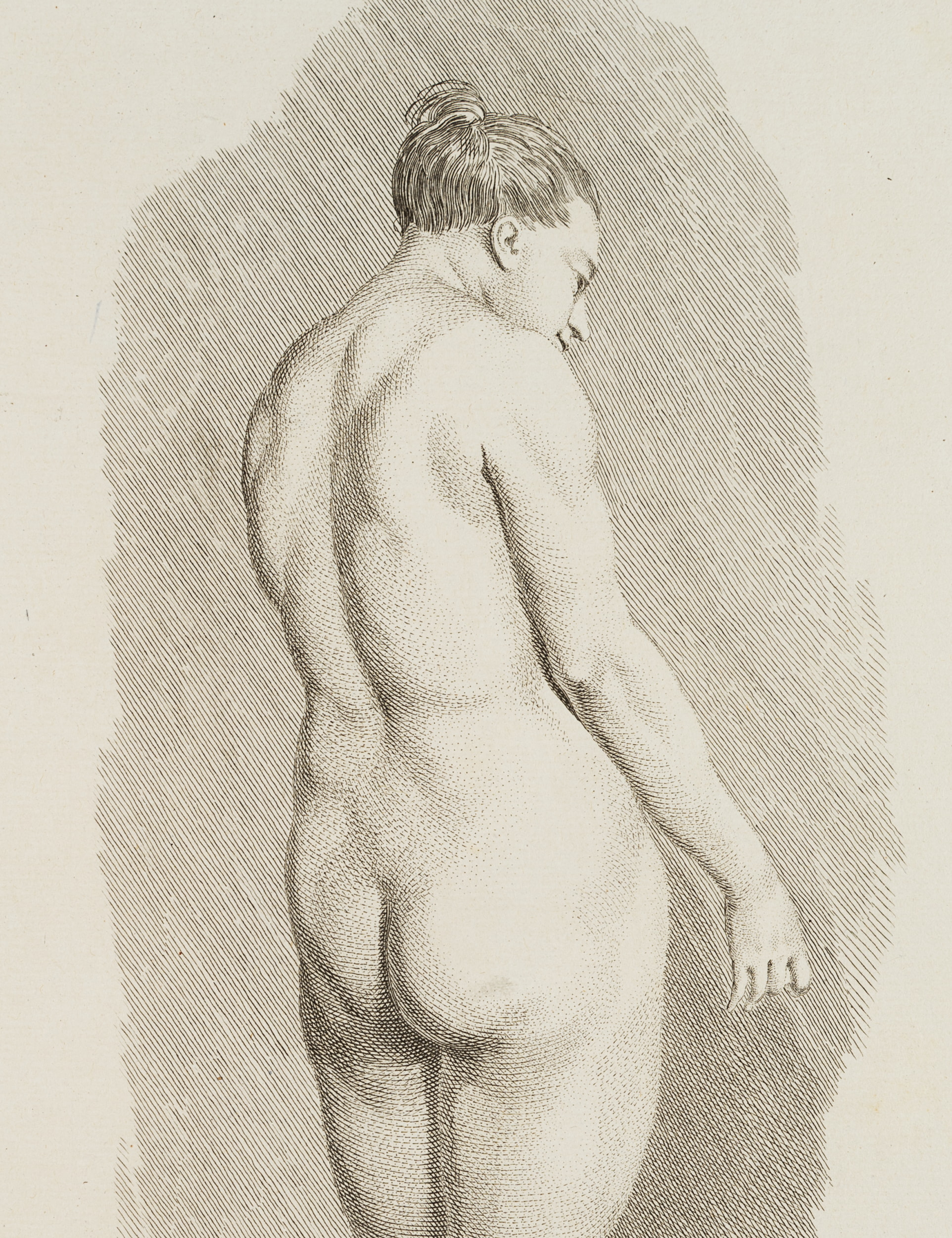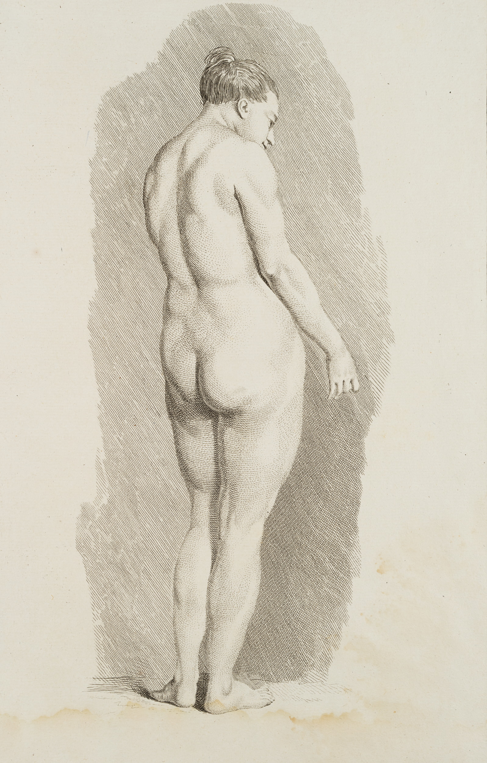 Benoît Louis Prévost (around 1735 – 1804 ) after Charles-Nicolas Cochin jun. (1715 Paris – 1790 ibid.), A standing female nude seen from behind, Dessein, , Copper engraving