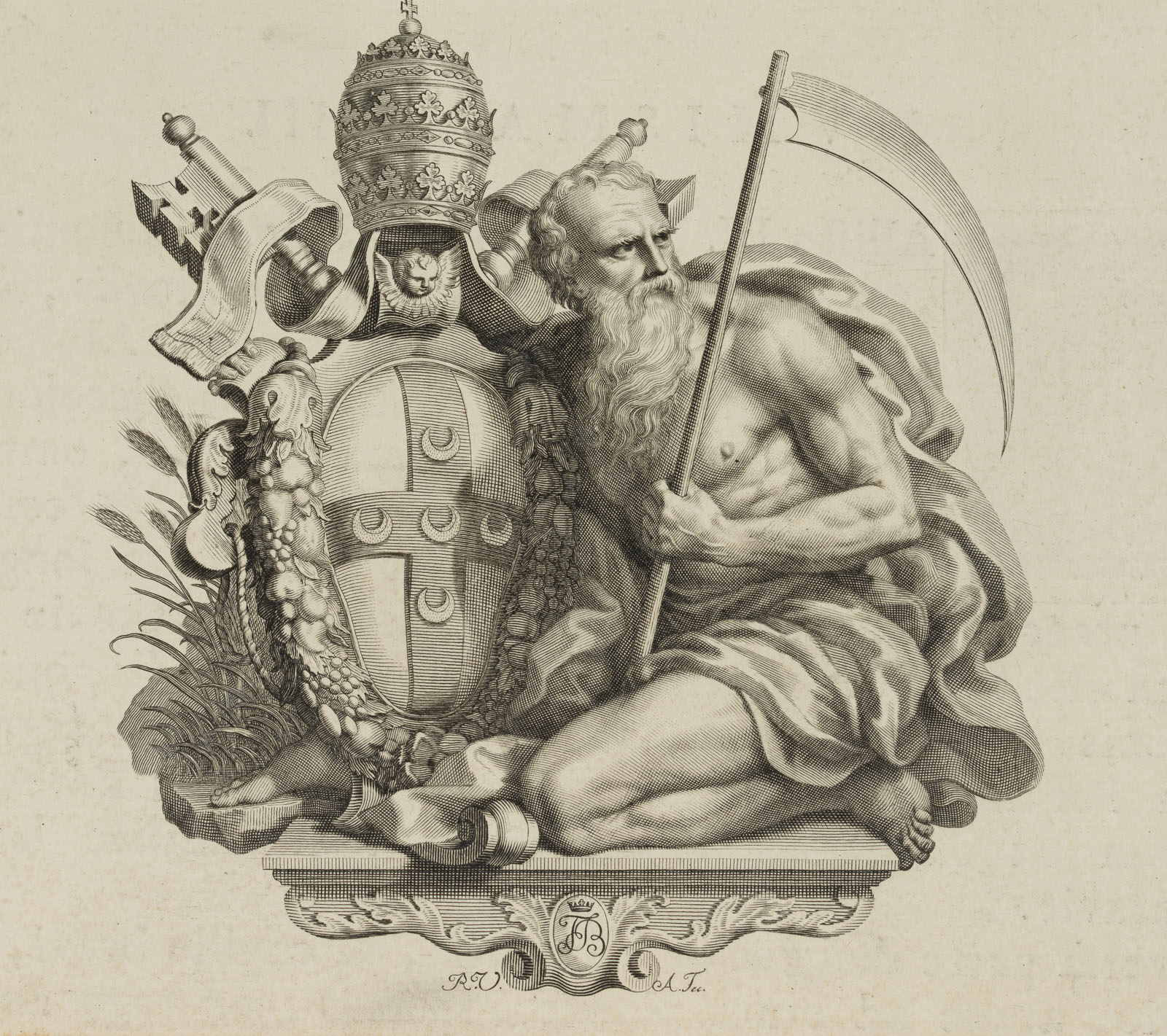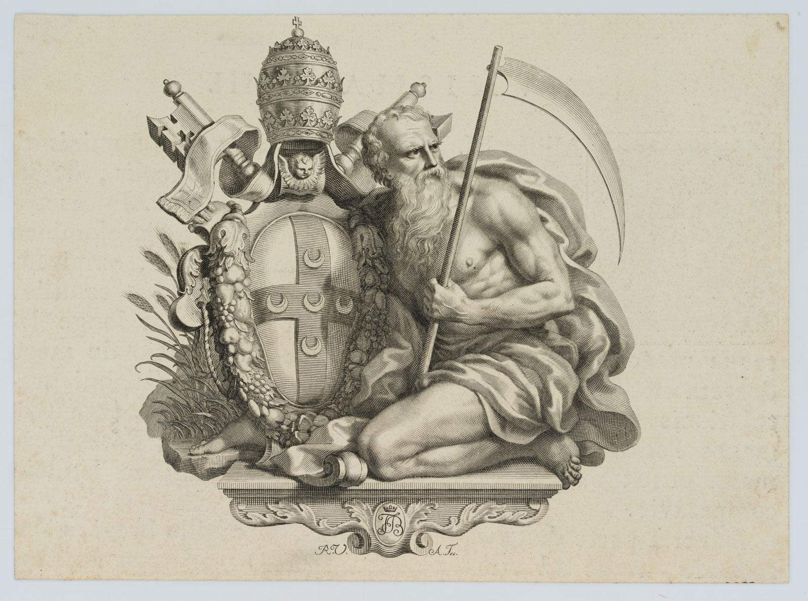 Robert van Audenaerd (1663 Ghent – 1743 ibid.), Saturn with Scythe, Venetian Patrician Family Barbarigo, 1700, Copper engraving
