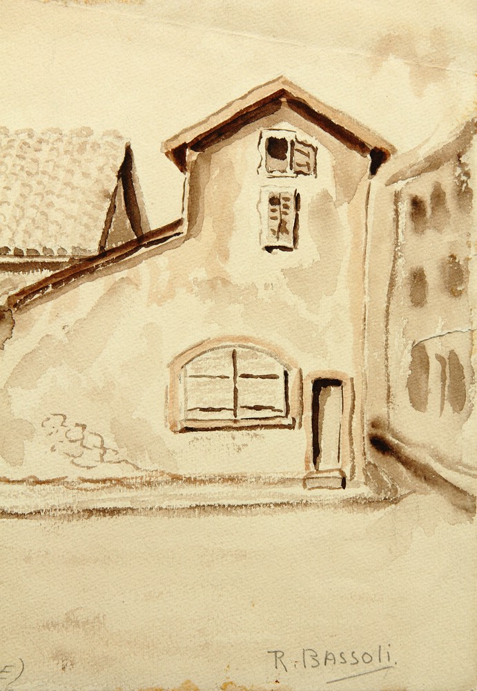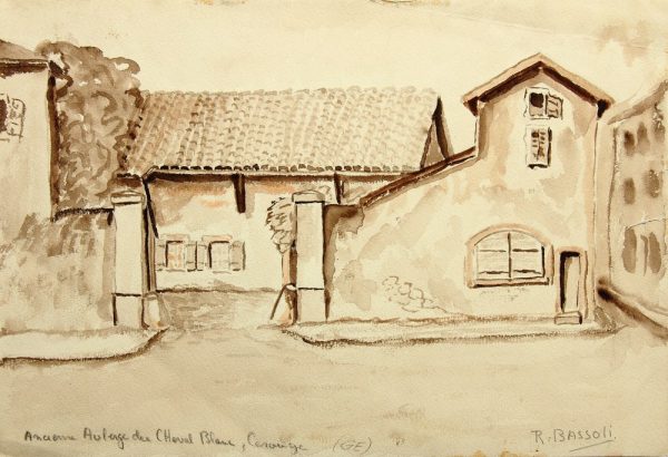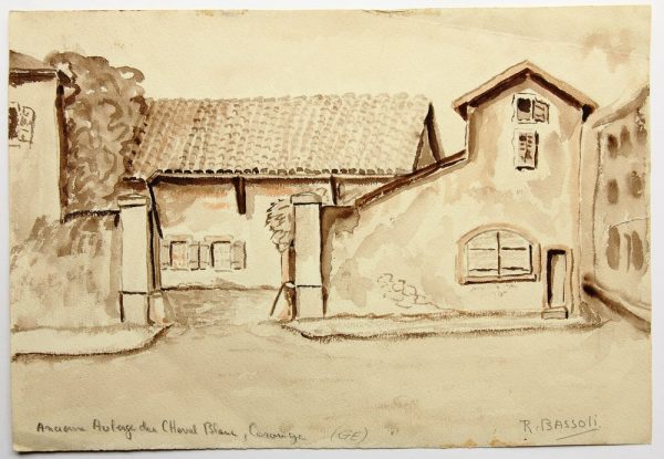 R. Bassoli (19th century), Plain farmstead, “Cheval Blanc, 19th century, Watercolor