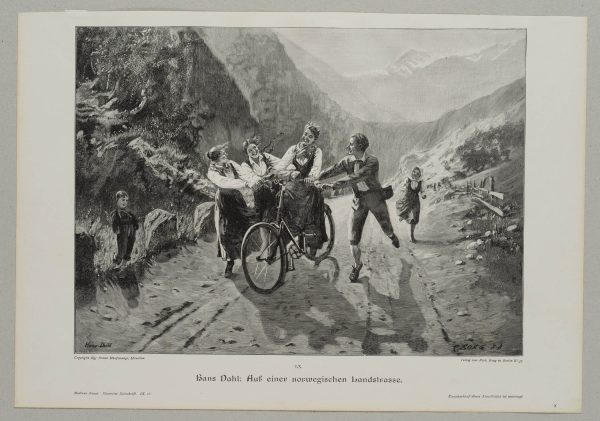 - Schlagworte: Landleben, Heiterkeit, Jugend, Norwegen, Fahrrad fahren, Trachten, Genre, Deutschland, Realismus, 1900-1924