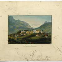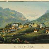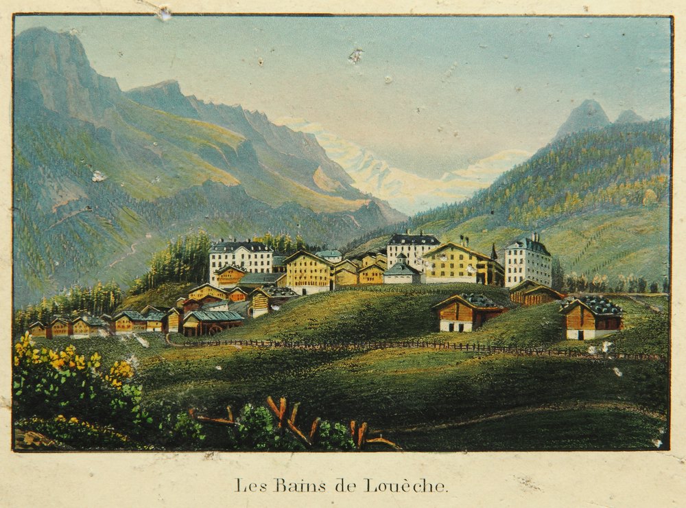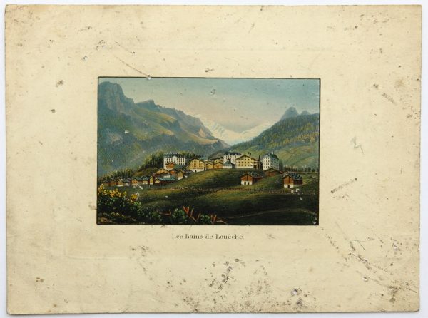- Inscription: Titled “Les Bains de Louèche” below the image in the printing plate. On the reverse there is an attribution in pencil.