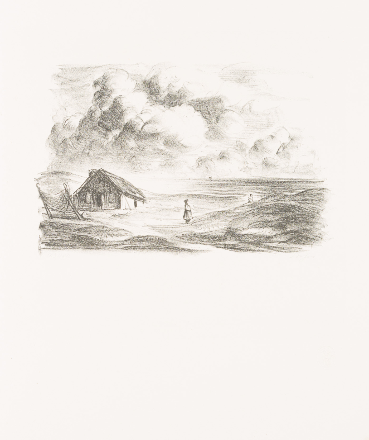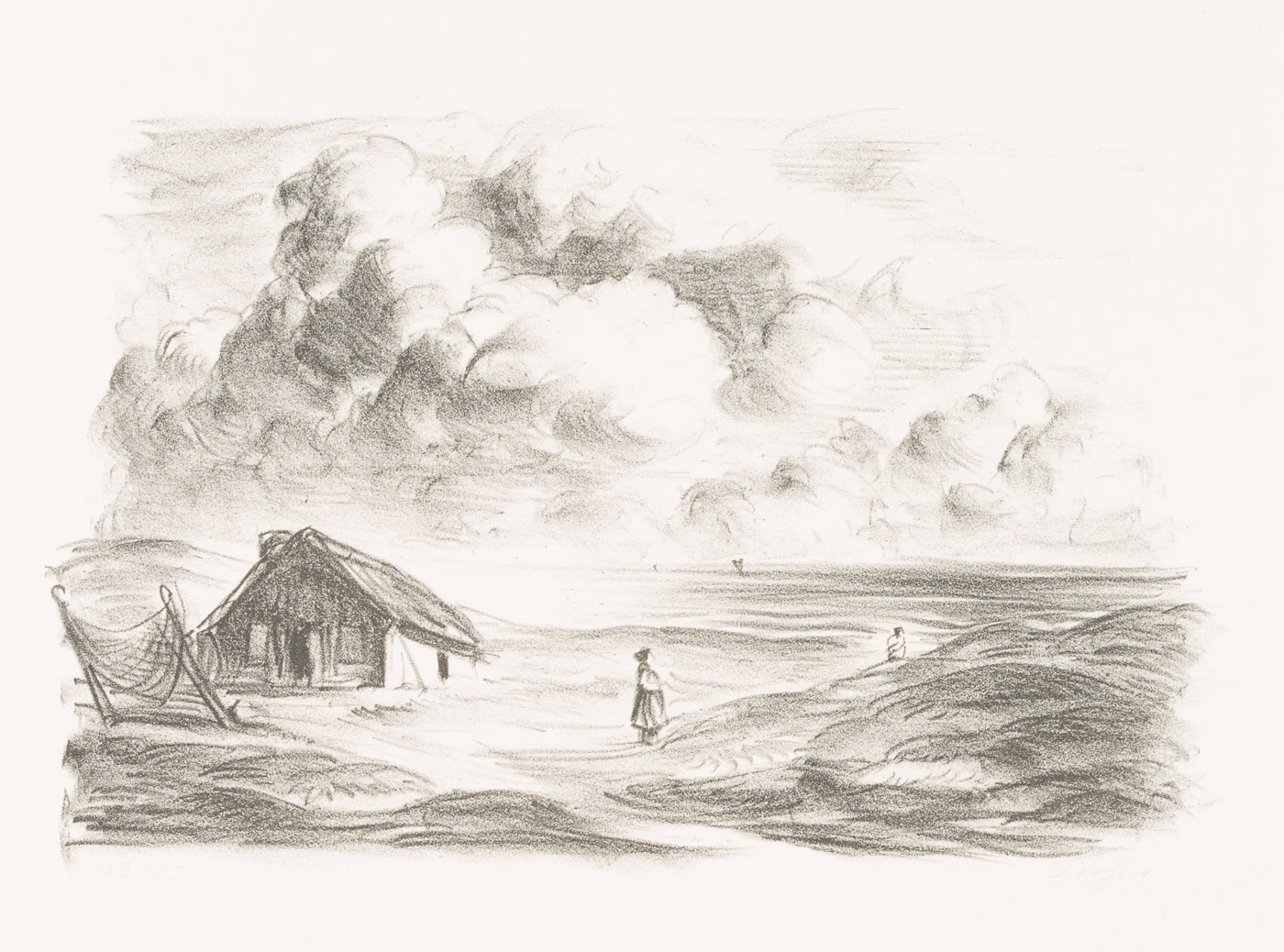 Richard Dreher (1875 Dresden – 1932 ibid.), The Fisherman and his Wife, Landscape by the Sea, 1923, Lithography