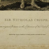 - Description: R. GROMEK (18th c. , Great Britain), Stand portrait in uniform of Sir Nicholas Crisp (c. 1599 – 1666), English royalist and pioneer of the West Africa trade, etching. Description:Etching on paper. Signed in printing plate below the image and titled with the sitter’s name.