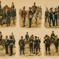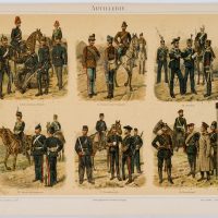Richard Knötel (1857 Glogau – 1914 Berlin), Representation of various artilleries German Empire, Austria-Hungary, Italy, Great Britain, France, Russia, 19th century, Chromolithograph