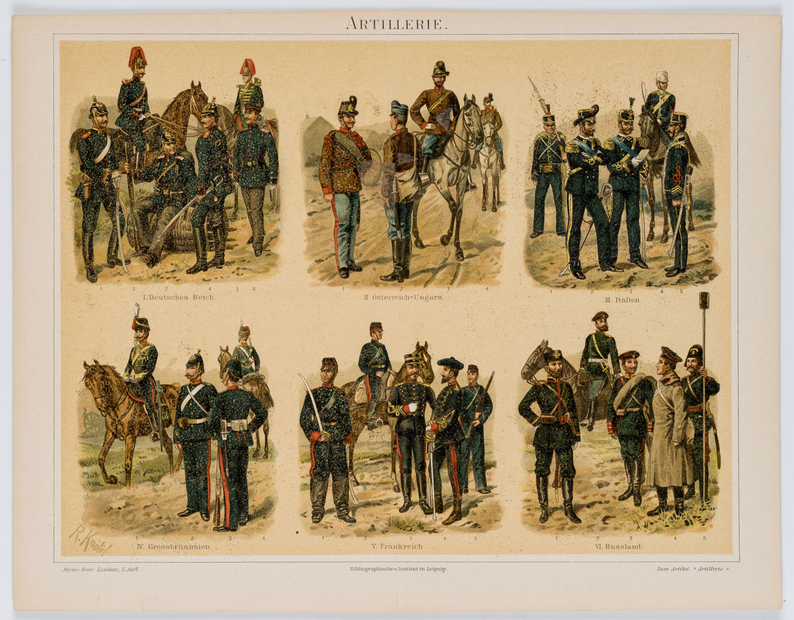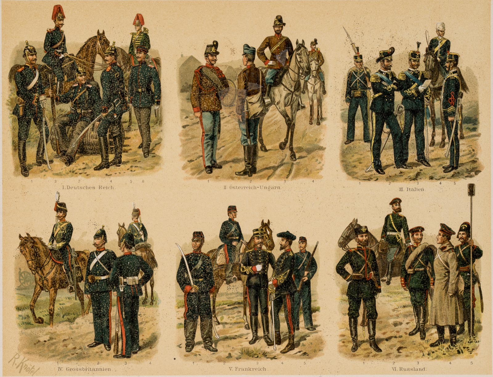 - Inscription: Signed “R. Knötel” in the lower left corner of the print.