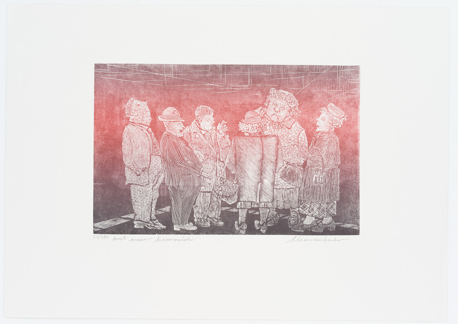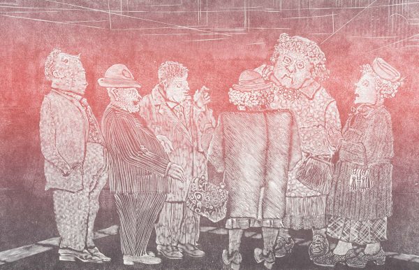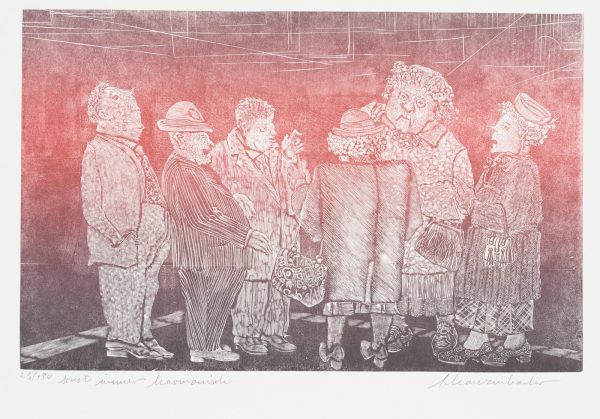 Robert Schanzenbacher (born 1950 Sulzbach on the Main), Caricature. Grumpy Group, c. 1980, Woodcut