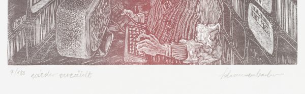 - Bezeichnung: Unterhalb mit Auflagennummerierung, bezeichnet und signiert. Robert Schanzenbacher studierte Gestaltung in Wiesbaden und lehrte an der Uni Wiesbaden und Holzminden. Die aus dem 18. Jahrhundert stammende Holzstich-Technik wird von ihm wiederholt als künstlerisches Ausdrucksmittel benutzt.