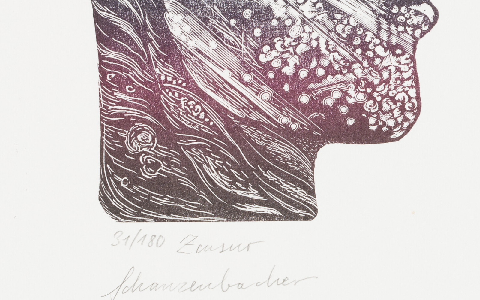 - Bezeichnung: Unterhalb mit Auflagennummerierung, bezeichnet und signiert. Robert Schanzenbacher studierte Gestaltung in Wiesbaden und lehrte an der Uni Wiesbaden und Holzminden. Die aus dem 18. Jahrhundert stammende Holzstich-Technik wird von ihm wiederholt als künstlerisches Ausdrucksmittel benutzt.