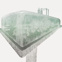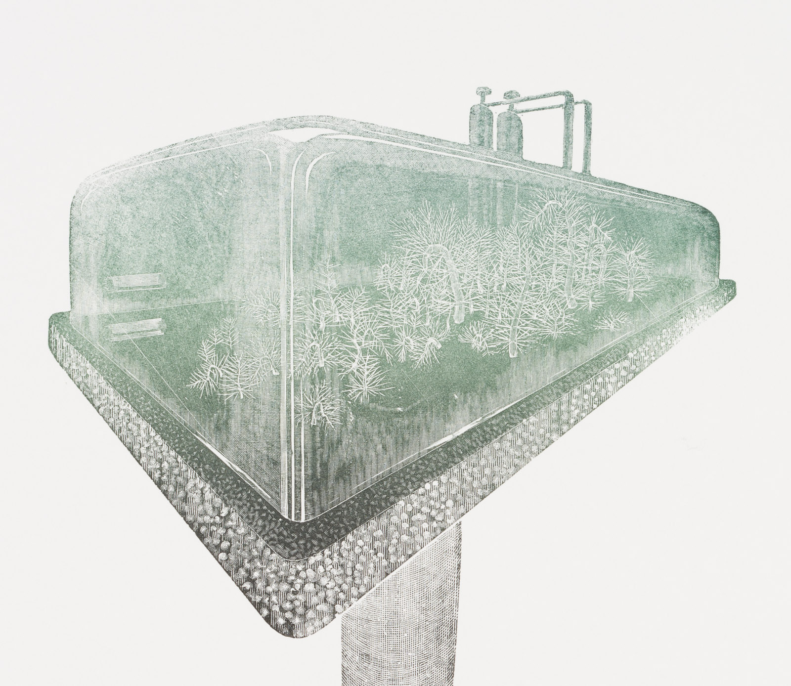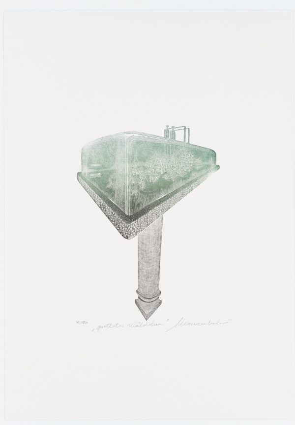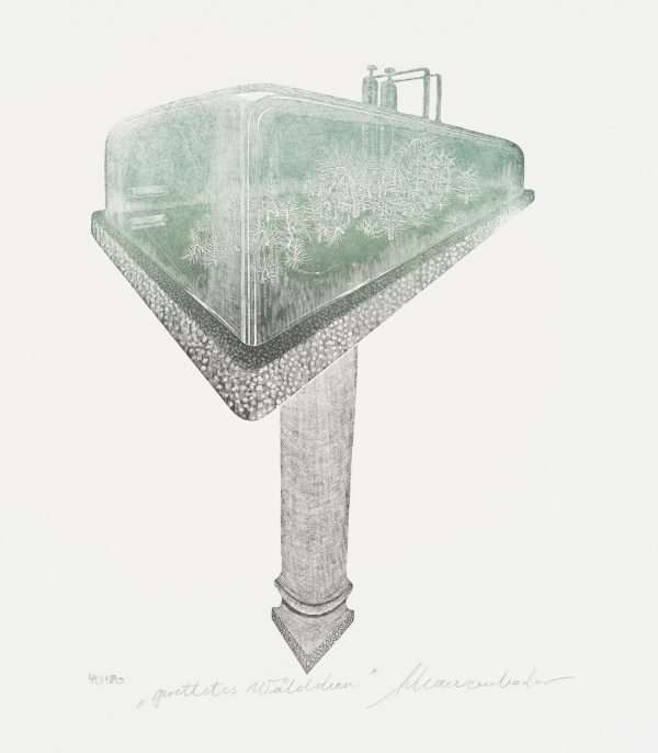 Robert Schanzenbacher (*1950 Sulzbach am Main), Kleines Waldstück mit Haube, um 1980, Holzschnitt