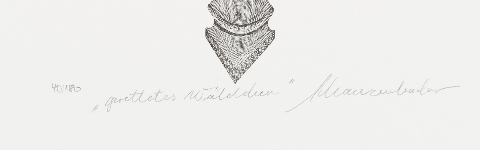 - Bezeichnung: Unterhalb mit Auflagennummerierung, bezeichnet und signiert. Robert Schanzenbacher studierte Gestaltung in Wiesbaden und lehrte an der Uni Wiesbaden und Holzminden. Die aus dem 18. Jahrhundert stammende Holzstich-Technik wird von ihm wiederholt als künstlerisches Ausdrucksmittel benutzt.