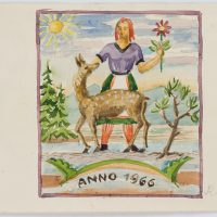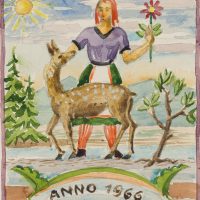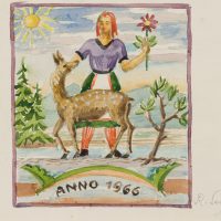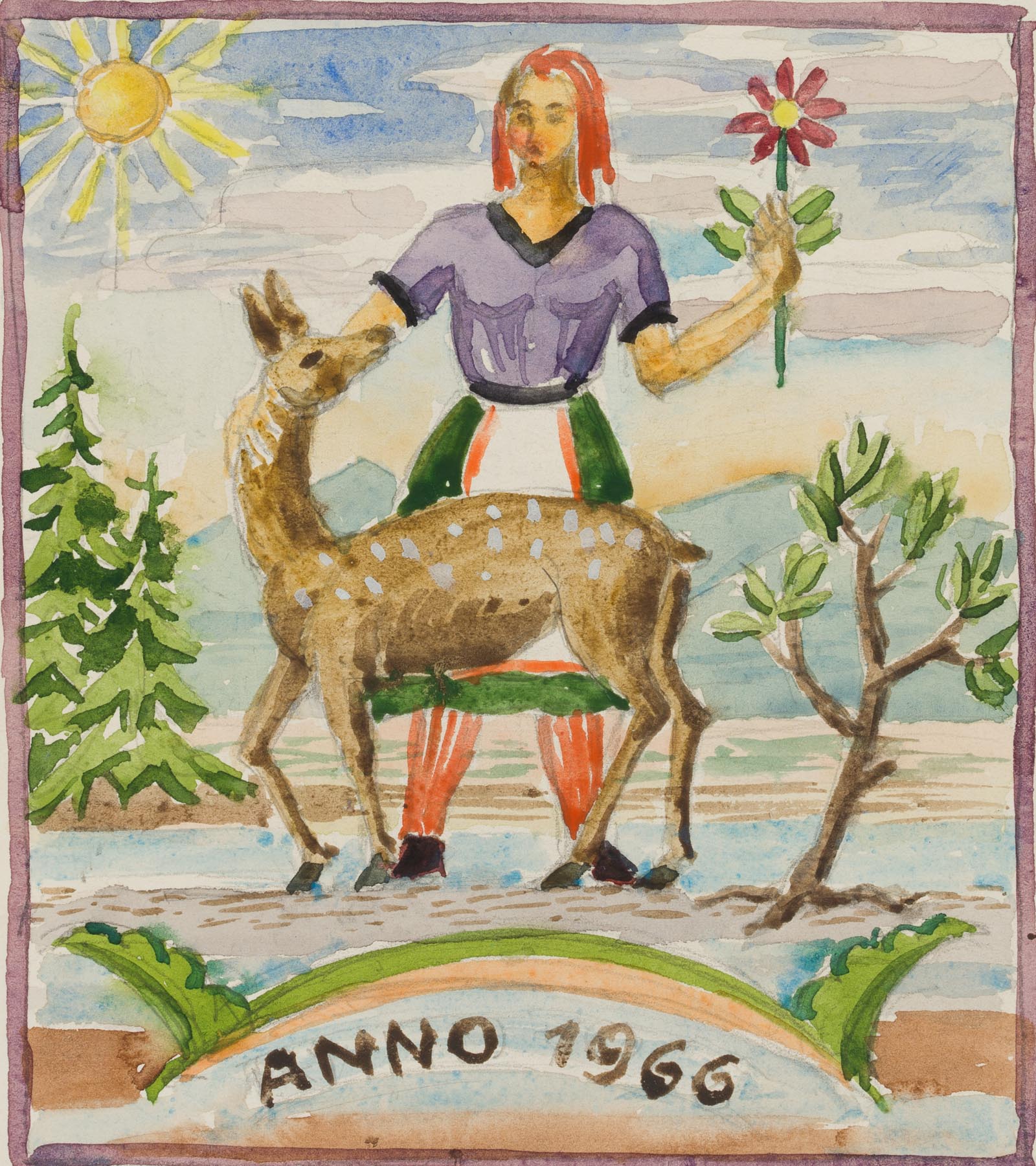 Rudolf Schmid (1896 Dolní Rychnov near Falknov – 1971 Marburg on the Lahn), “Anno 1966 – Girl with a Deer”, 1966, Watercolor