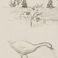 Verso with charcoal study: Garden wall with goose. - Date: 1966