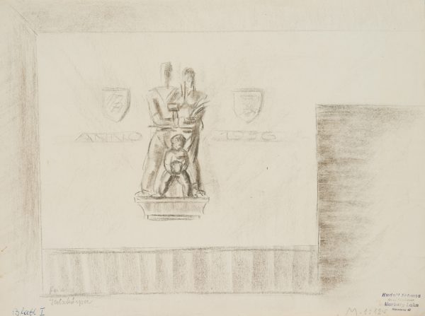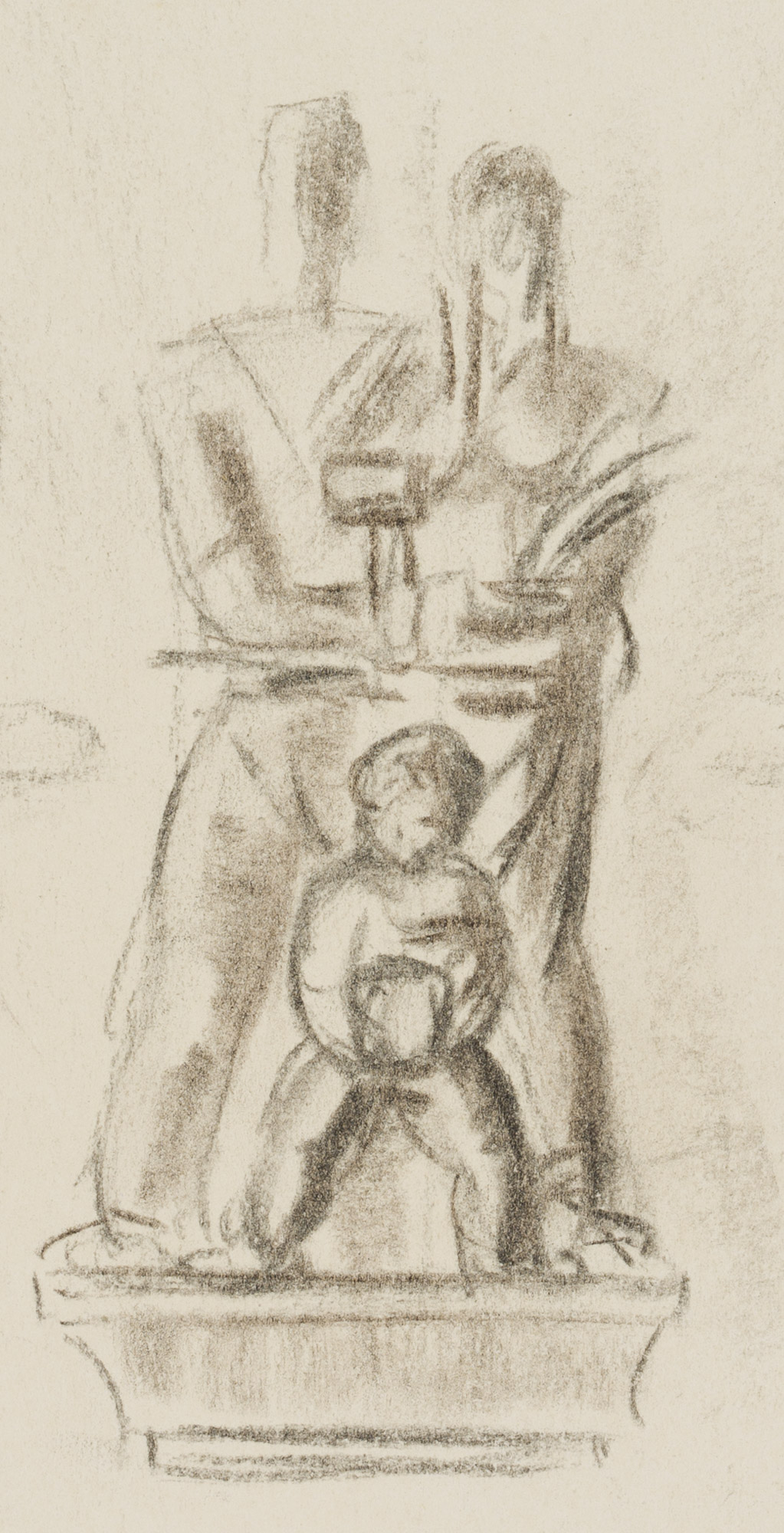 Rudolf Schmid (1896 Dolní Rychnov u Falknova – 1971 Marburg an der Lahn), Entwurf einer dreifigurigen Skulptur “Anno 1956”, um 1956, Kohle