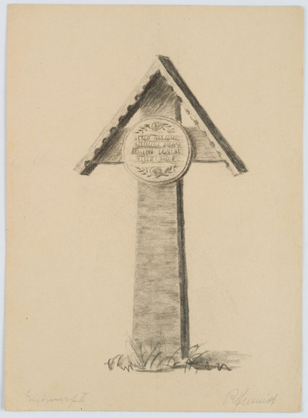 - Description: Drawing by the academic sculptor Rudolf Schmid, an artist working in Marburg, who had to leave his Sudeten German homeland towards the end of the Second World War and was displaced to the university town.