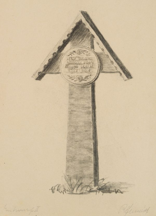Rudolf Schmid (1896 Dolní Rychnov near Falknov – 1971 Marburg on the Lahn), Field cross, design II, c. 1950, Charcoal