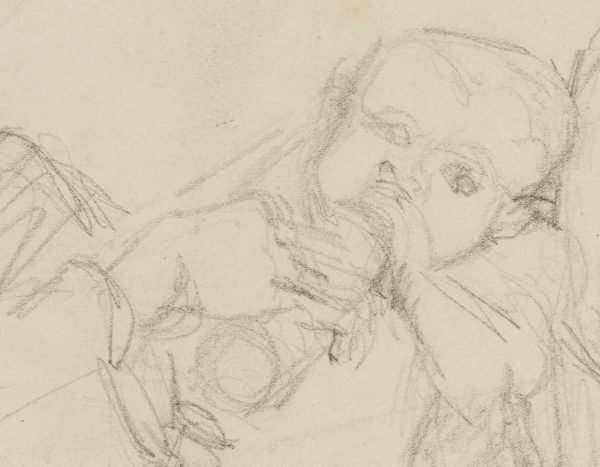 - Technik: Bleistift auf Papier, aufgezogen auf Pappe