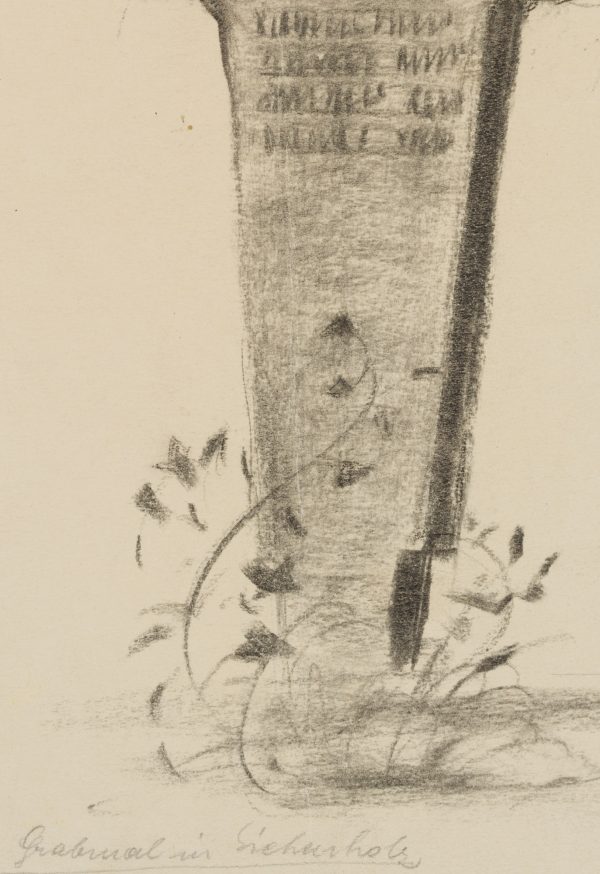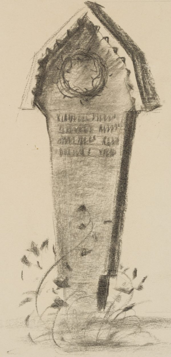 Rudolf Schmid (1896 Dolní Rychnov u Falknova – 1971 Marburg an der Lahn), Grabmal aus Eichenholz, um 1950, Bleistift