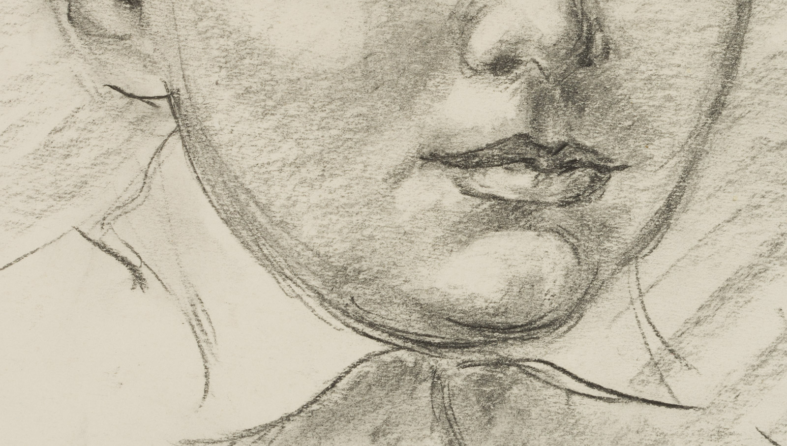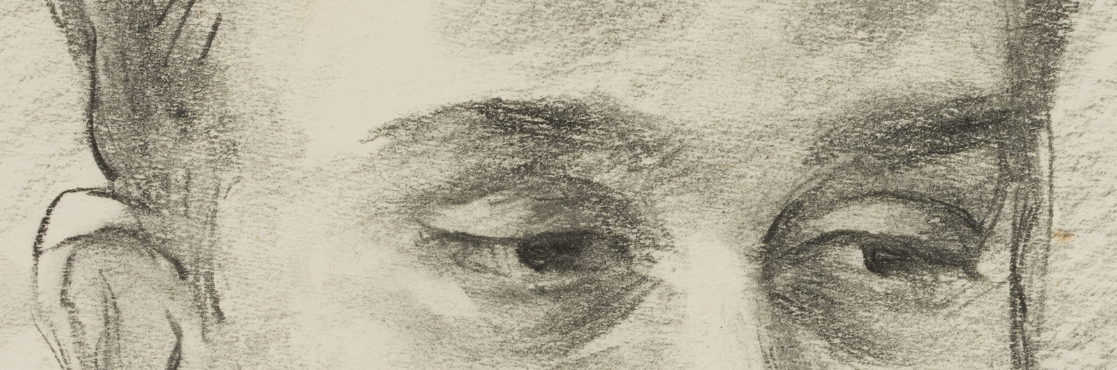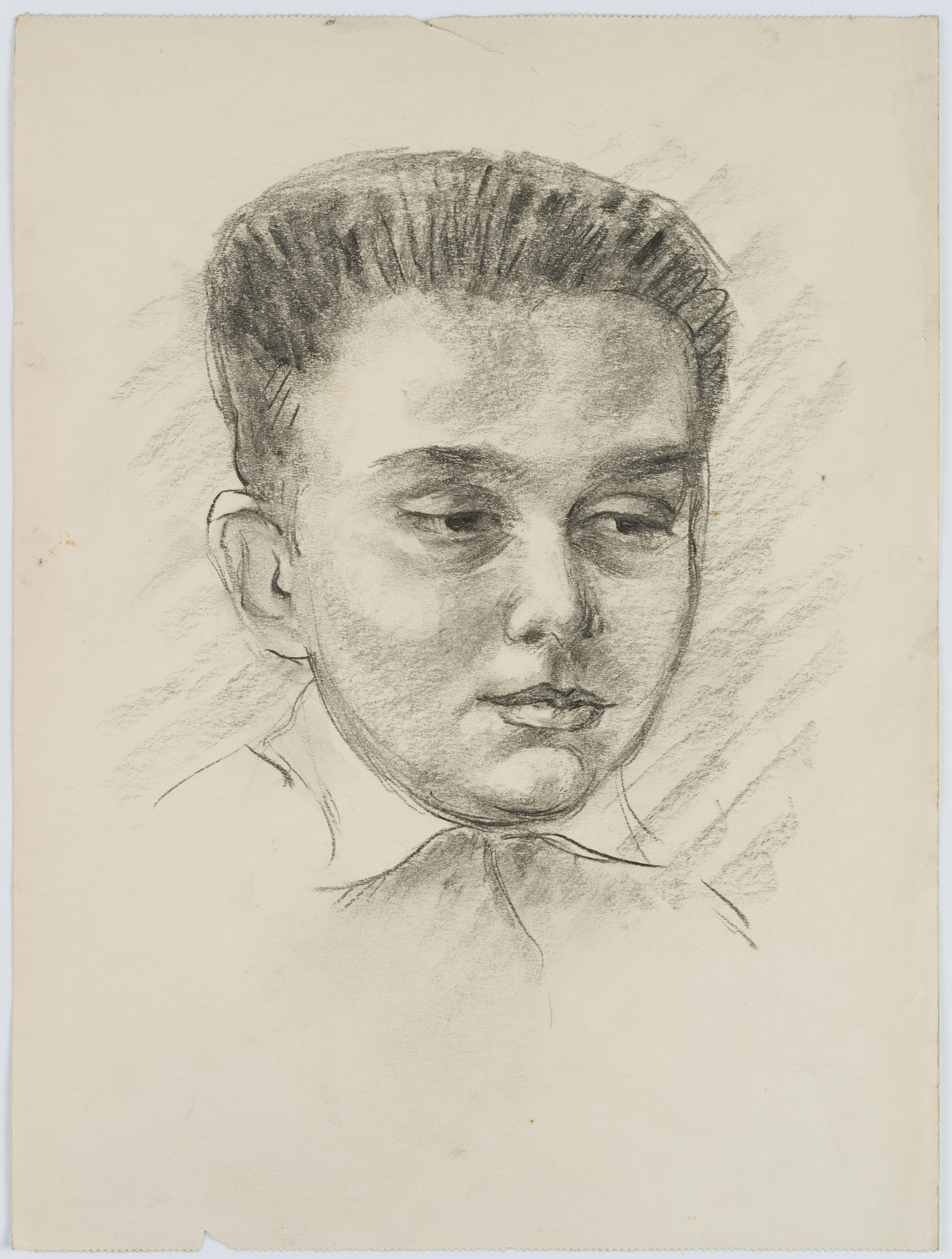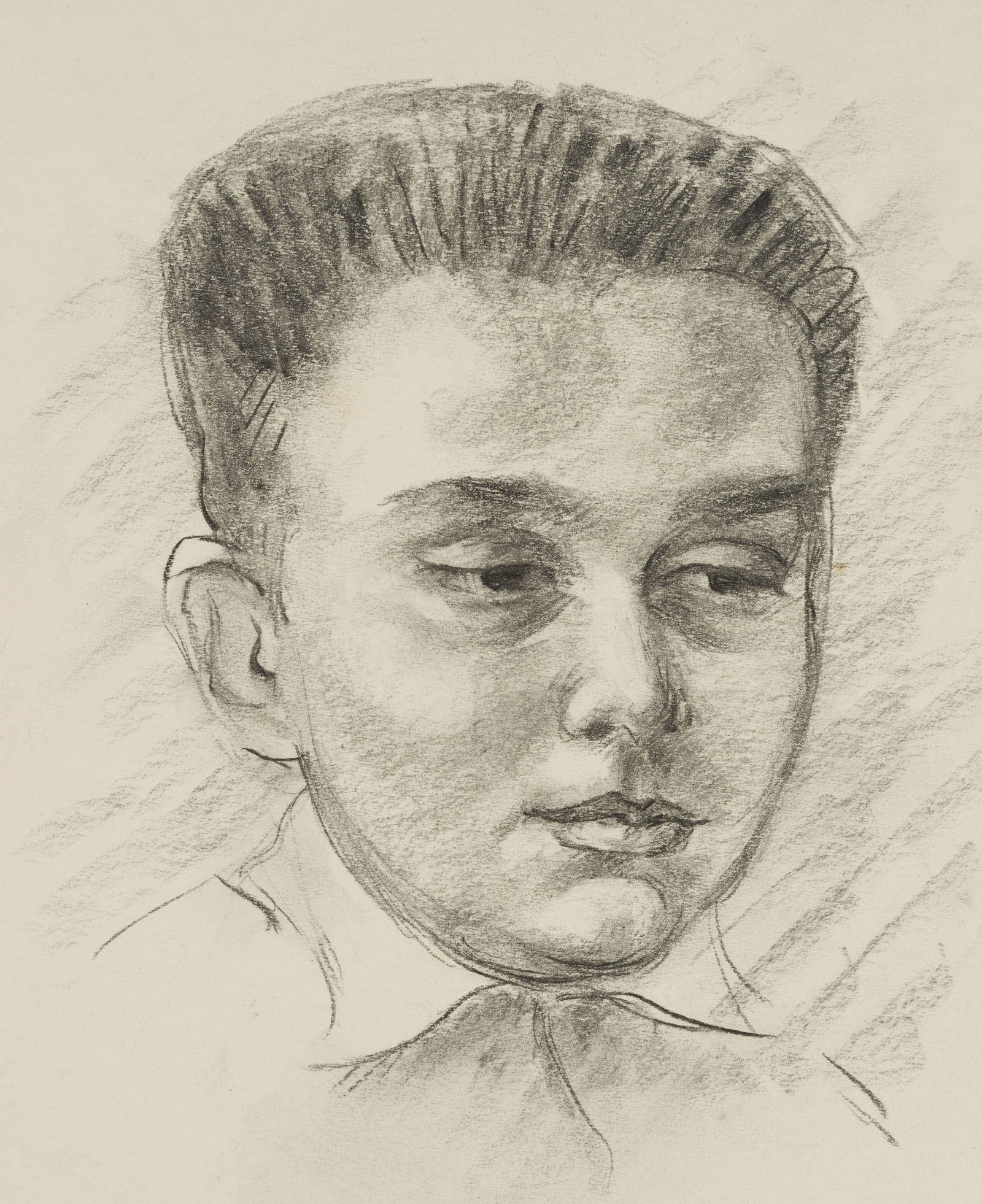 Rudolf Schmid (1896 Dolní Rychnov near Falknov – 1971 Marburg on the Lahn), Portrait of a boy looking down, charcoal, c. 1960, Charcoal
