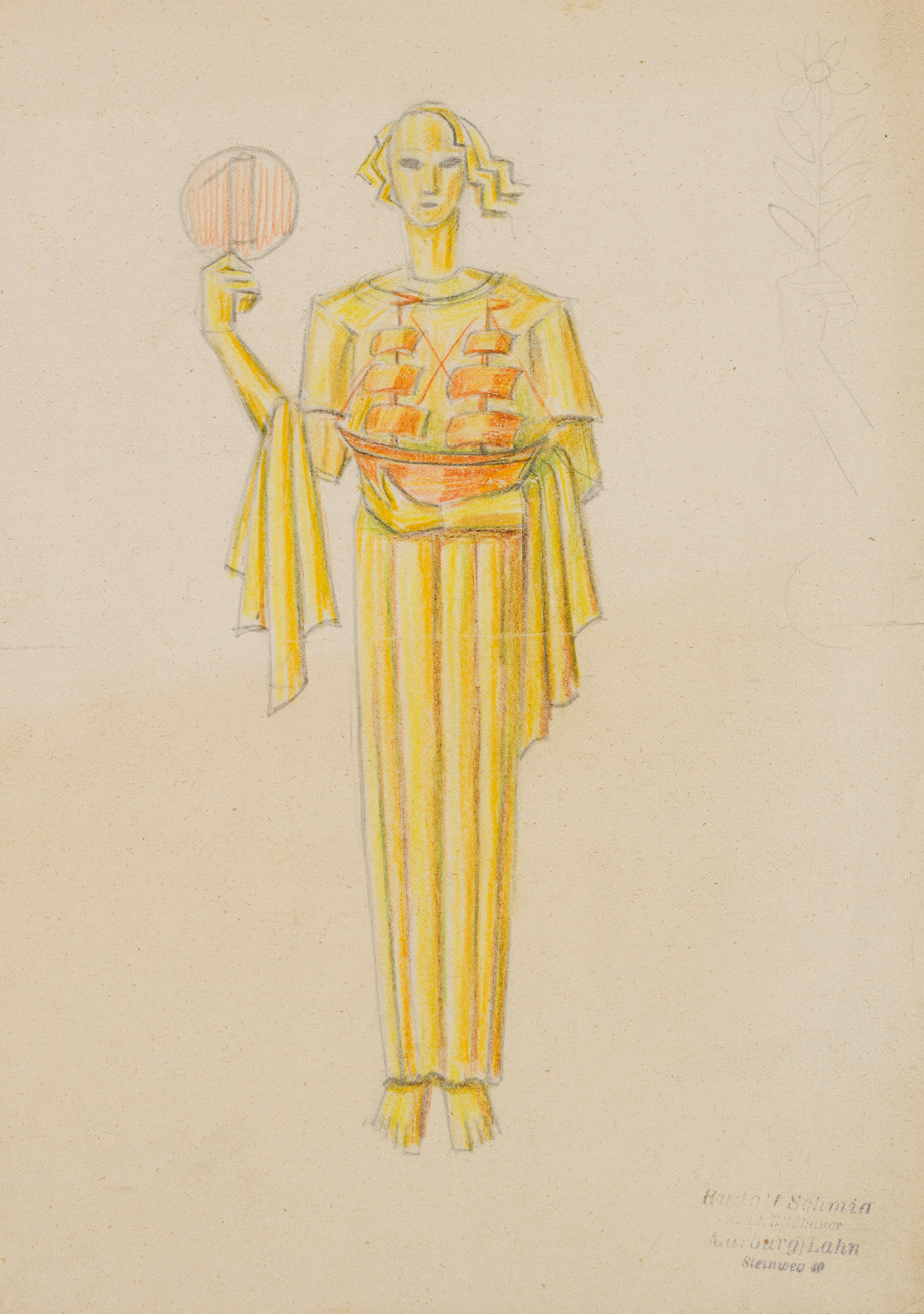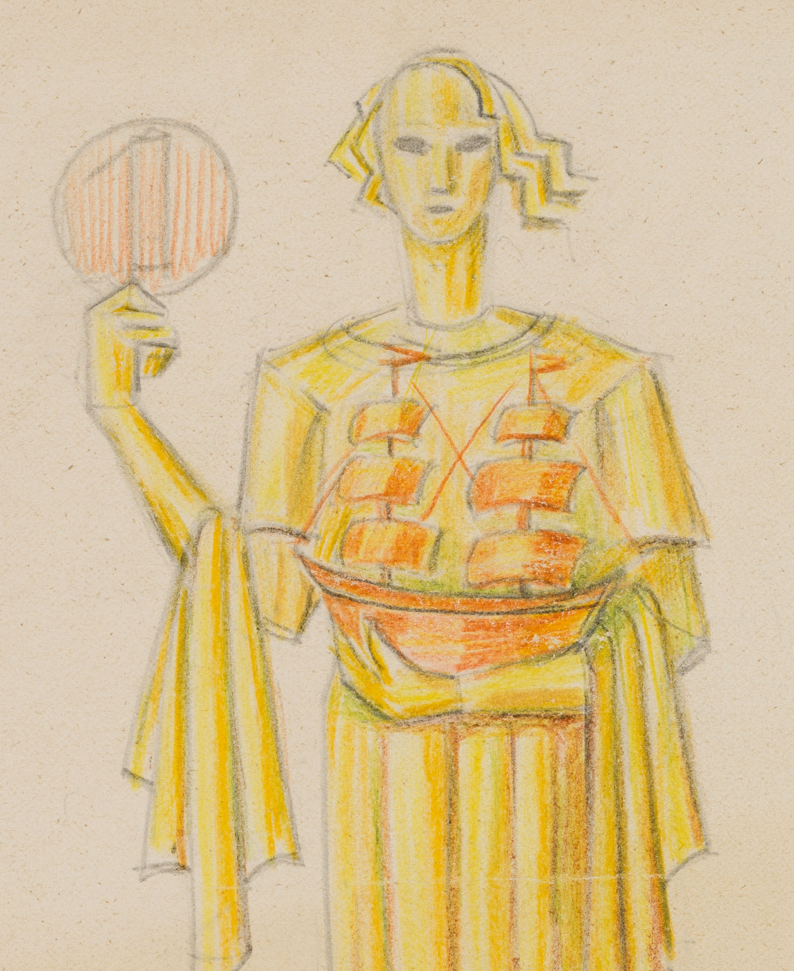 Rudolf Schmid (1896 Dolní Rychnov u Falknova – 1971 Marburg an der Lahn), Schutzheilige der Schifffahrt, um 1960, Buntstift
