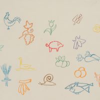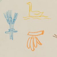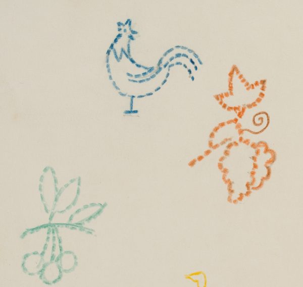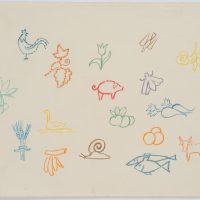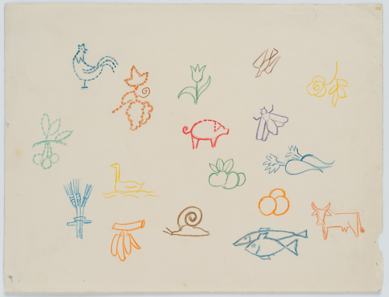 Rudolf Schmid (1896 Dolní Rychnov near Falknov – 1971 Marburg on the Lahn), Study Sheet: Children’s Pictograms, c. 1960, Colored pencil