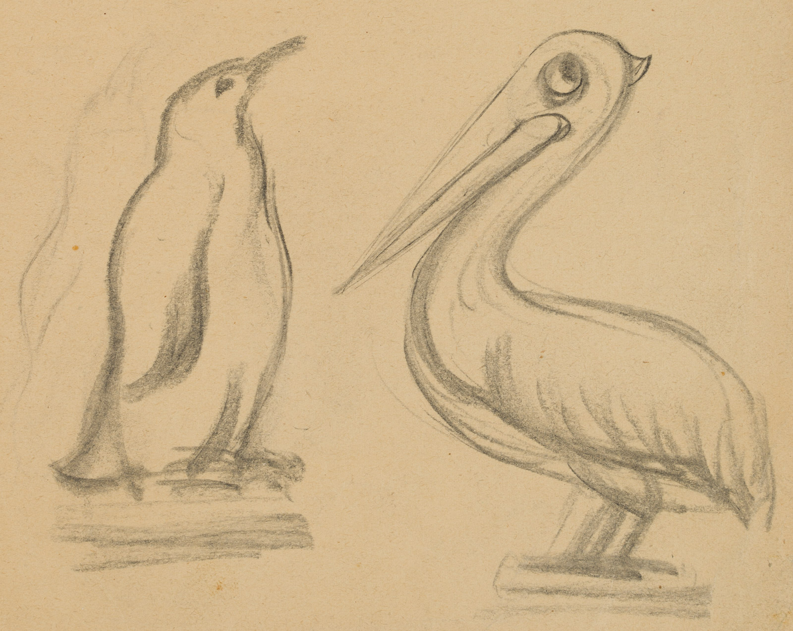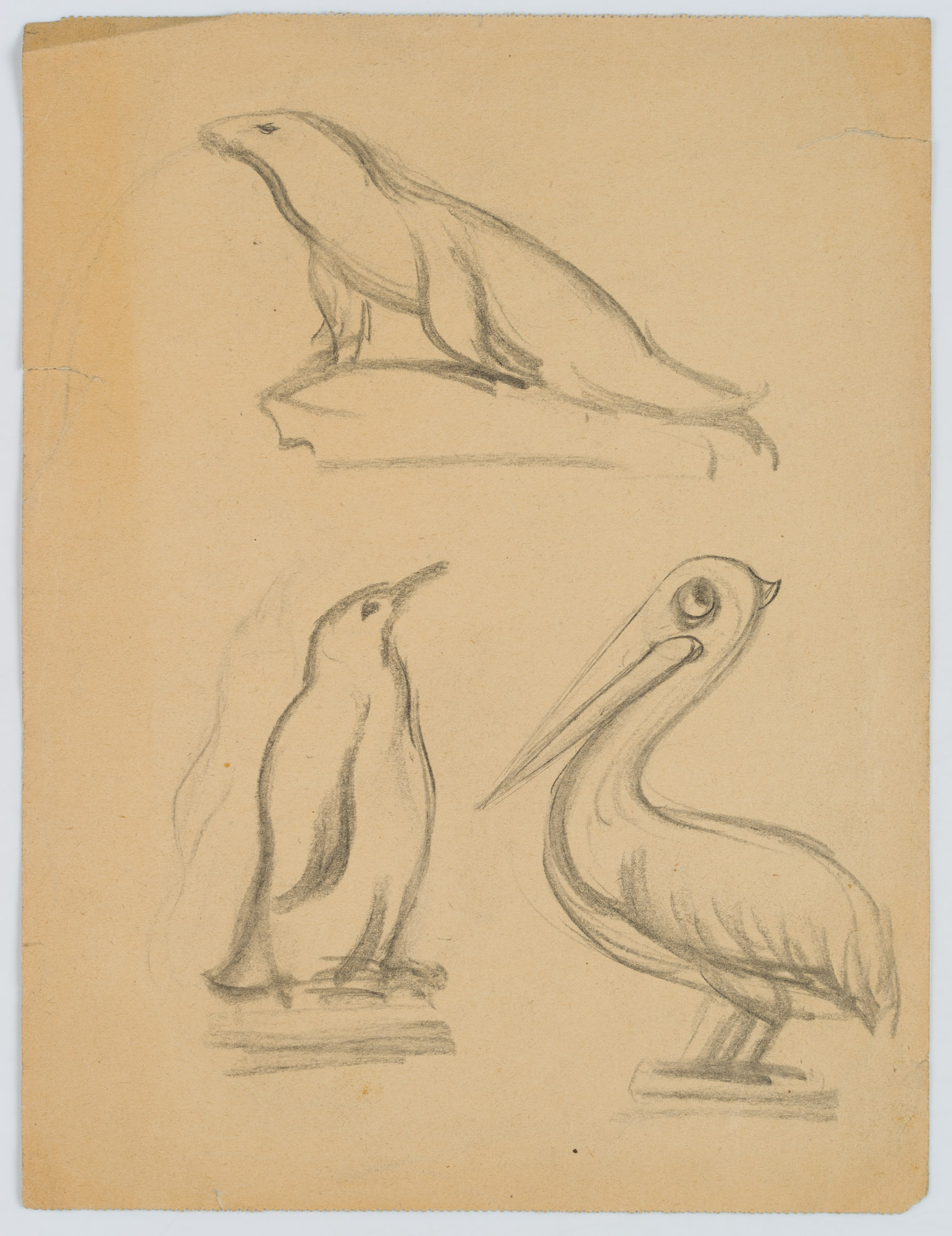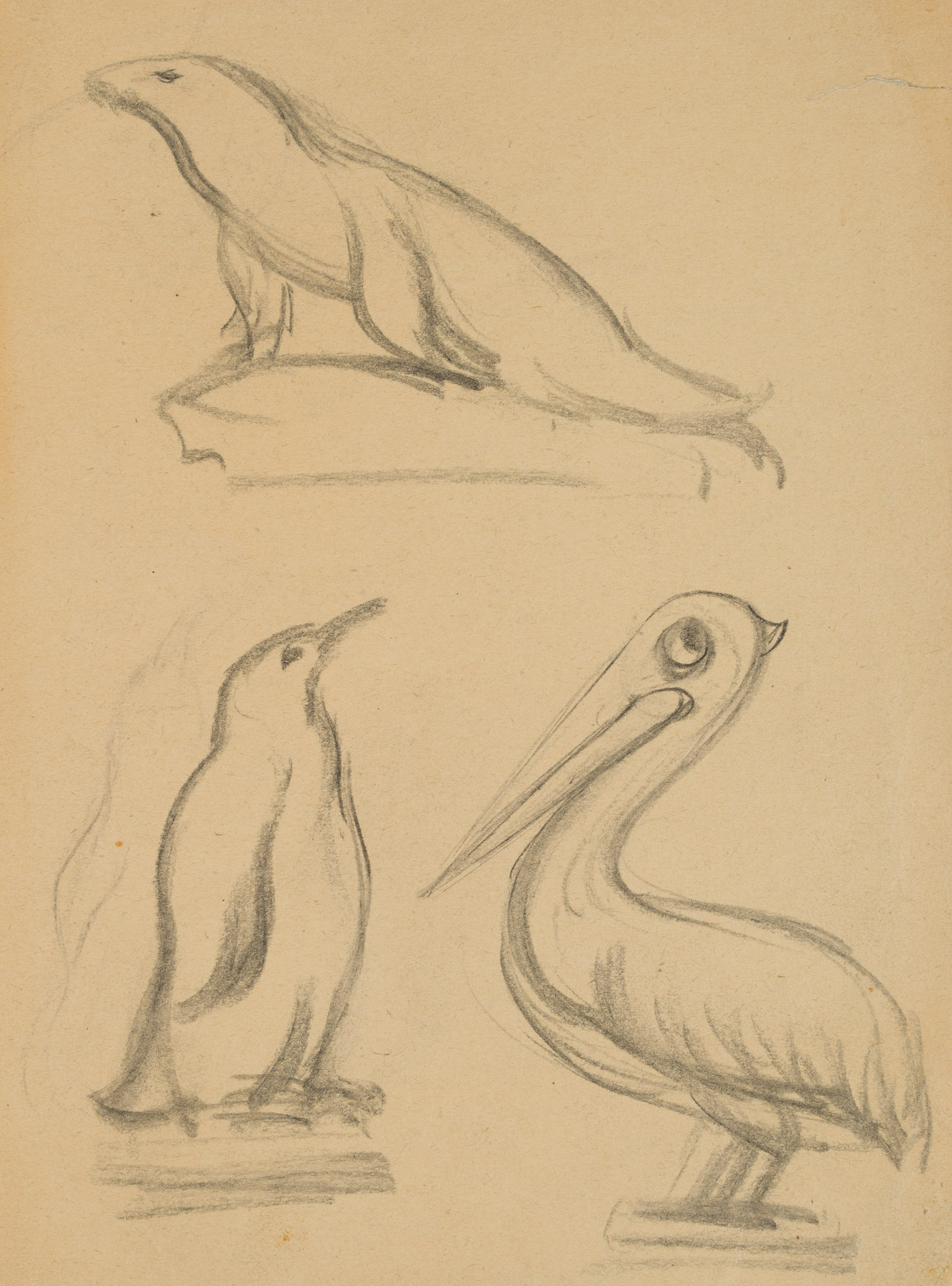 Rudolf Schmid (1896 Dolní Rychnov near Falknov – 1971 Marburg on the Lahn), Study Sheet: Seal, Penguin and Pelican, c. 1960, Pencil