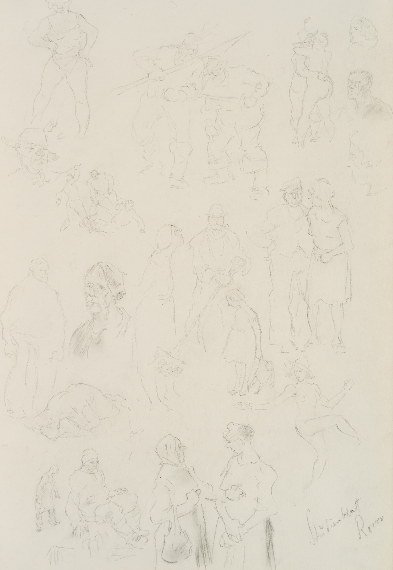 - Description: Rustic street scenes can be found here as well as women absorbed in conversation, a street sweeper with a pipe joins a juggler and a couple dancing in close embrace. The artist saw them all in Rome and recorded them on his study sheet.