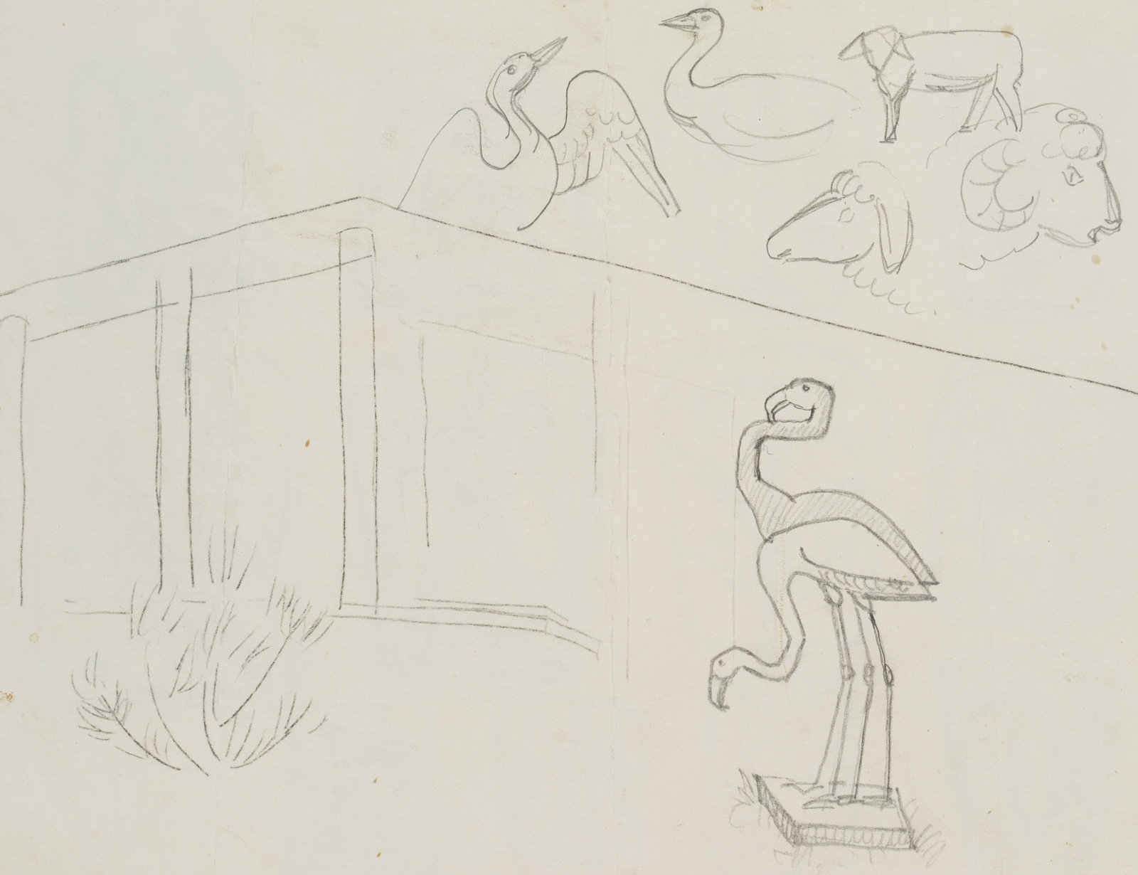 - Inscription: Numbered at the top of the third depiction: “1964”. Three rows, each with four depictions from Christianity: “Sich regen bringt Segen” with ears of corn, Archangel Michael slaying the dragon and the dove of peace with the olive branch. Verso with animal studies: flamingo, sheep and swan.