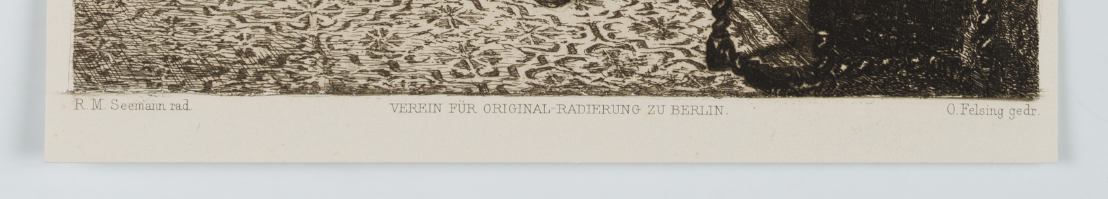 - Inscription: Signed “R.M. Seemann rad.” on the left under the print, signed “O. Felsing gedr.” on the right, inscribed “Verein für Original-Radierung zu Berlin” in the centre.
