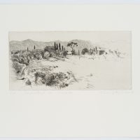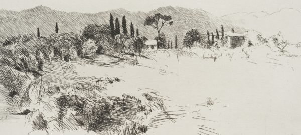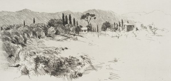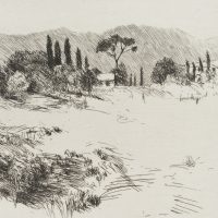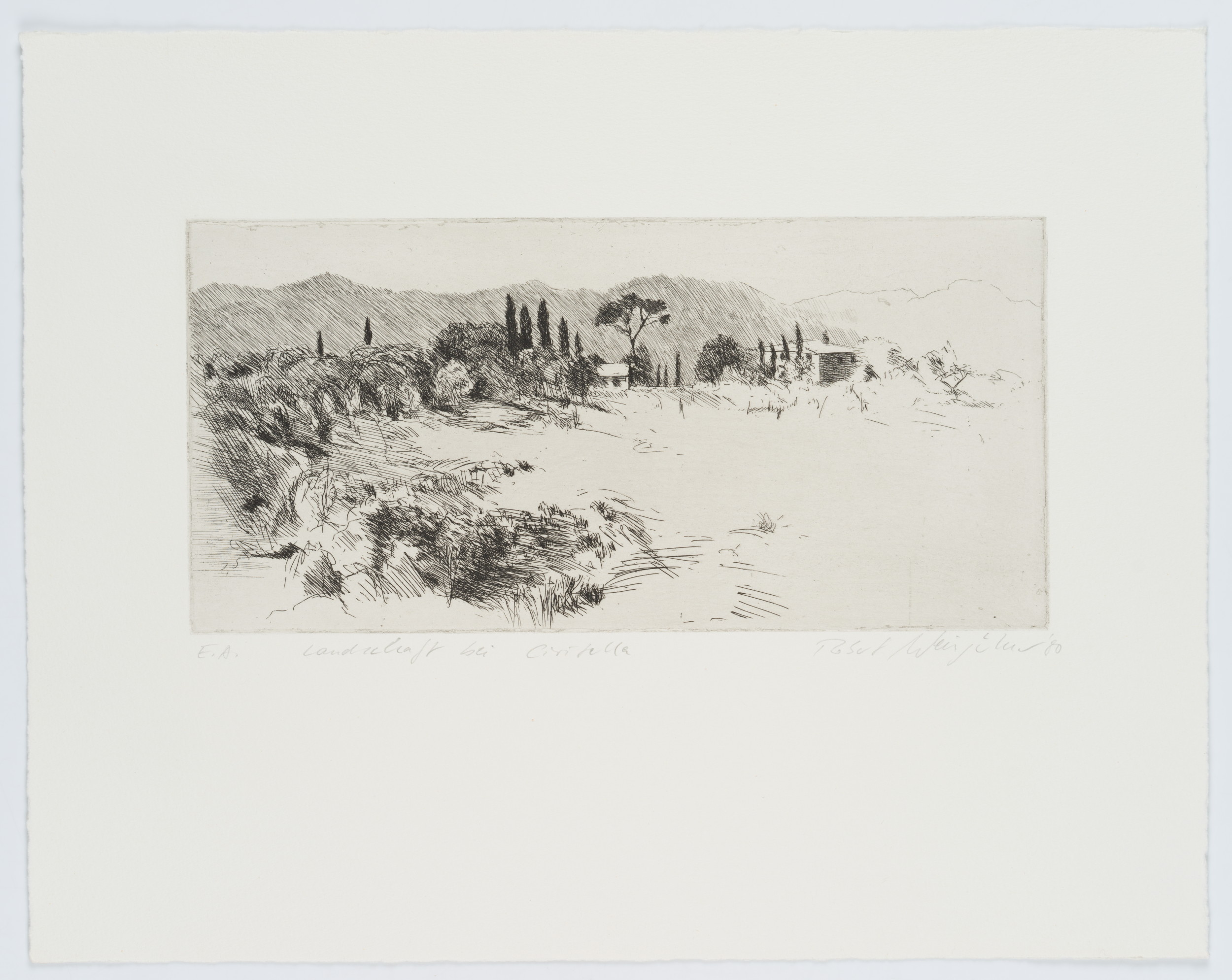 Robert Weingärtner (born 1955 Würzburg), Landscape near Civitella’ Tuscan landscape with pines and cypresses, 1980, Drypoint etching