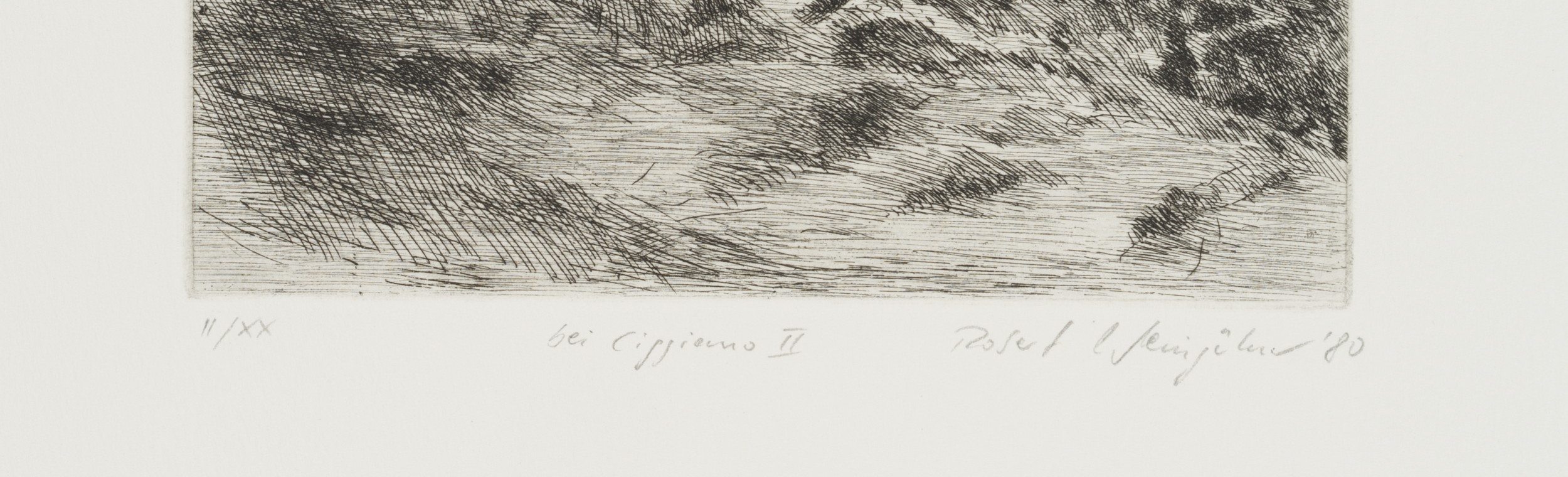 - Bezeichnung: Unten rechts signiert: “Robert Weingärtner ’80”. Unten mittig eigenhändig bezeichnet: “II/XX | bei Cipgiemo II [?]”.