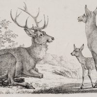 Raphael Winter (1784 Munich – 1852 ibid.), Roe deer family resting in a meadow, 19th century, Lithography