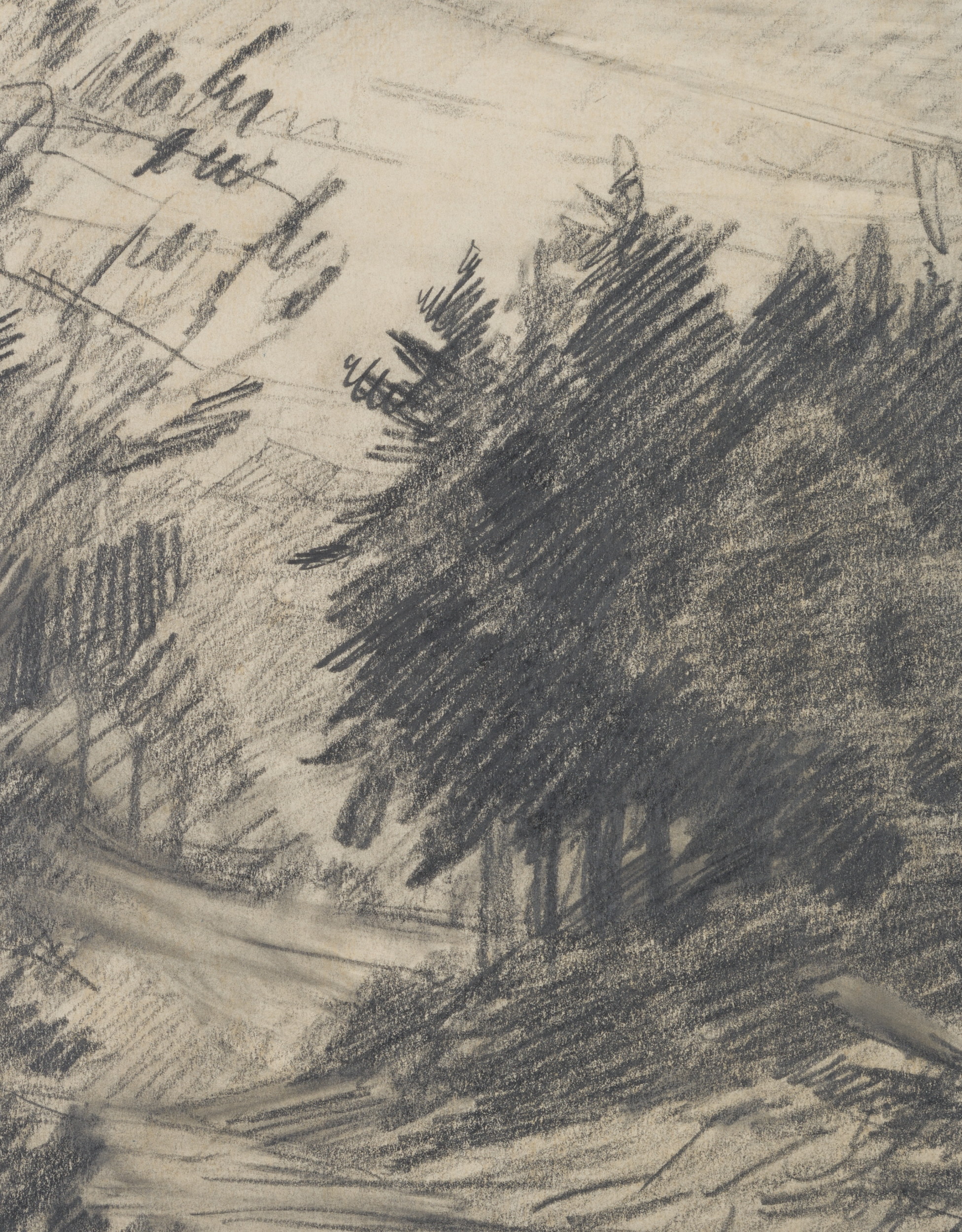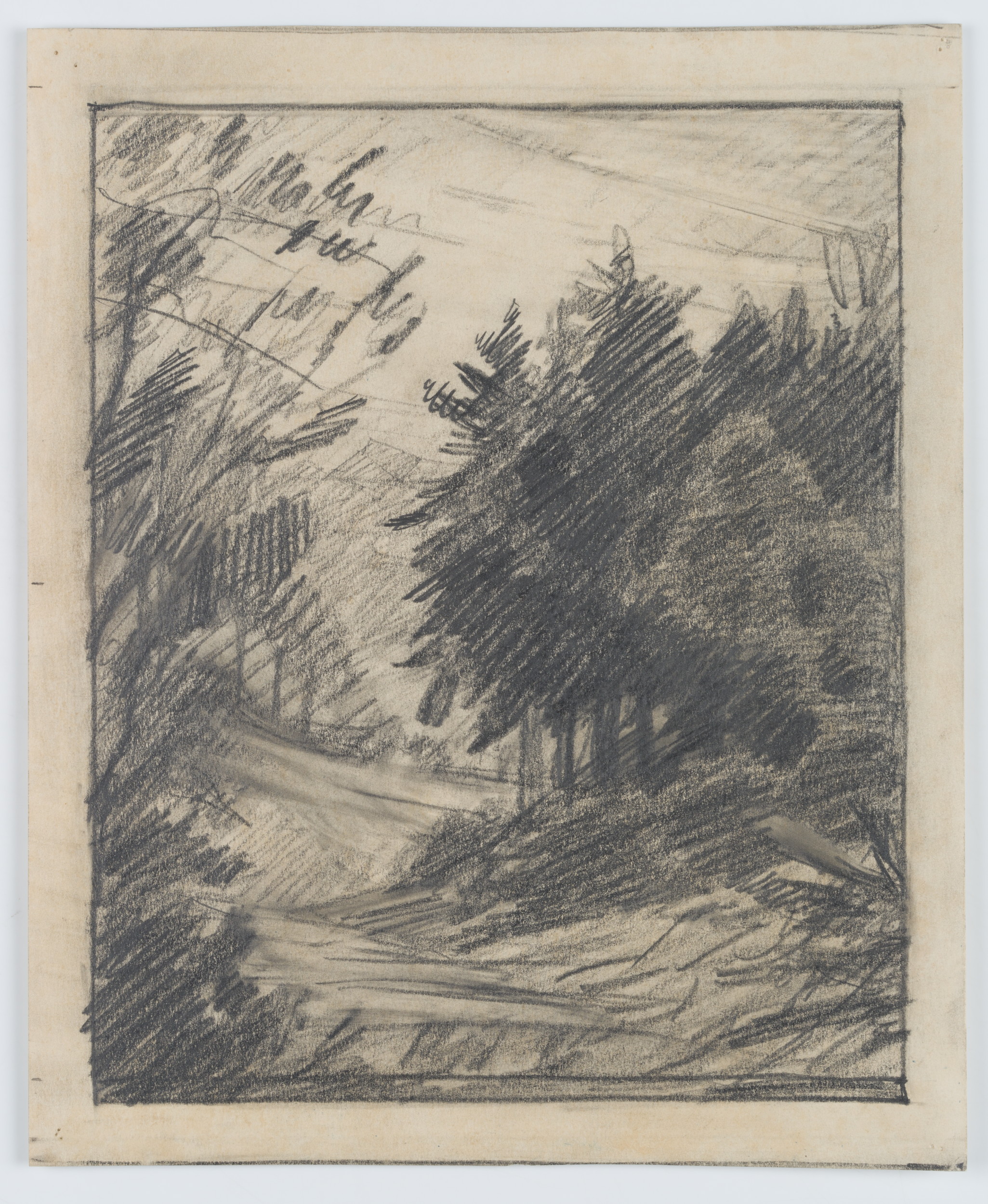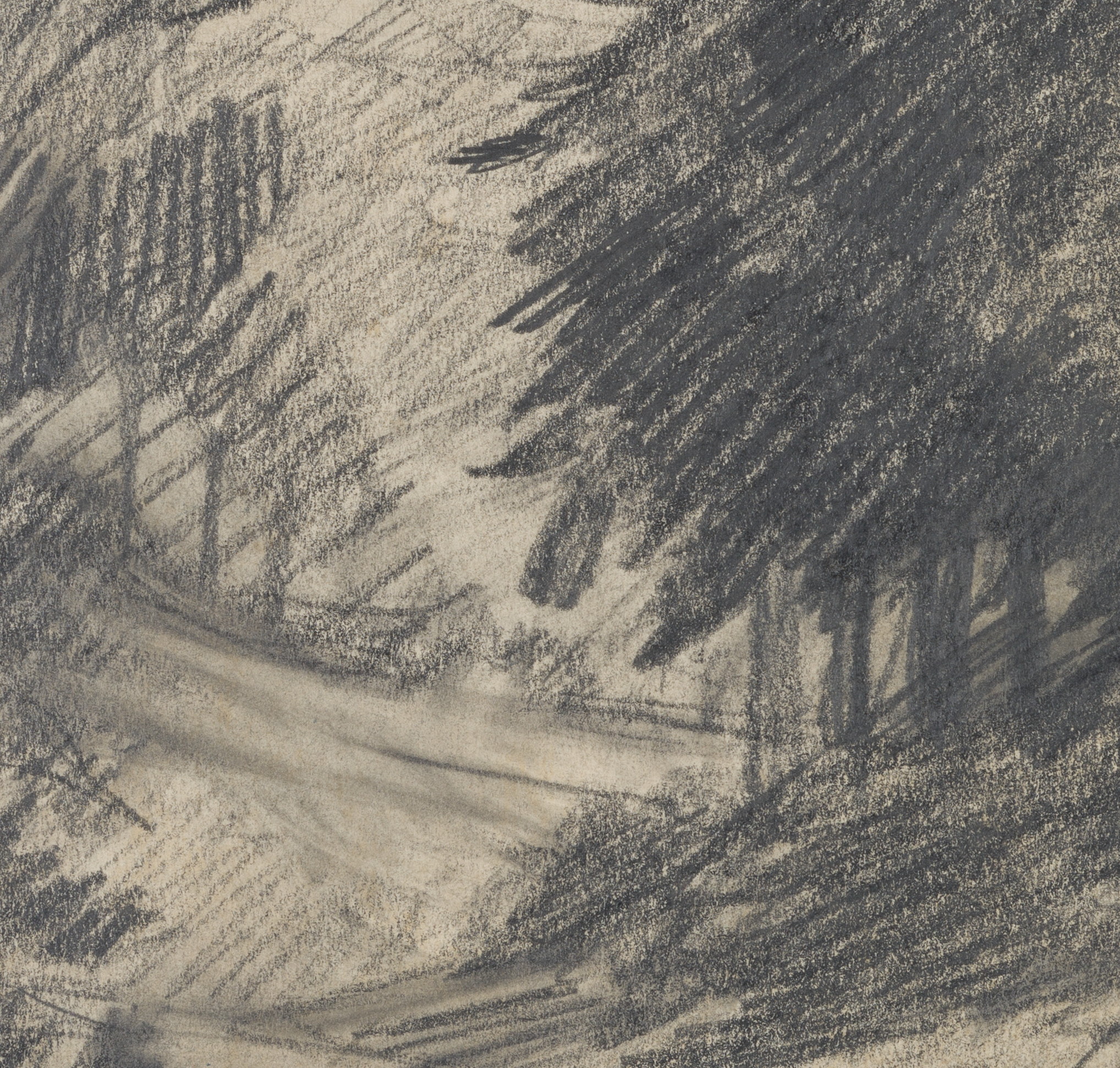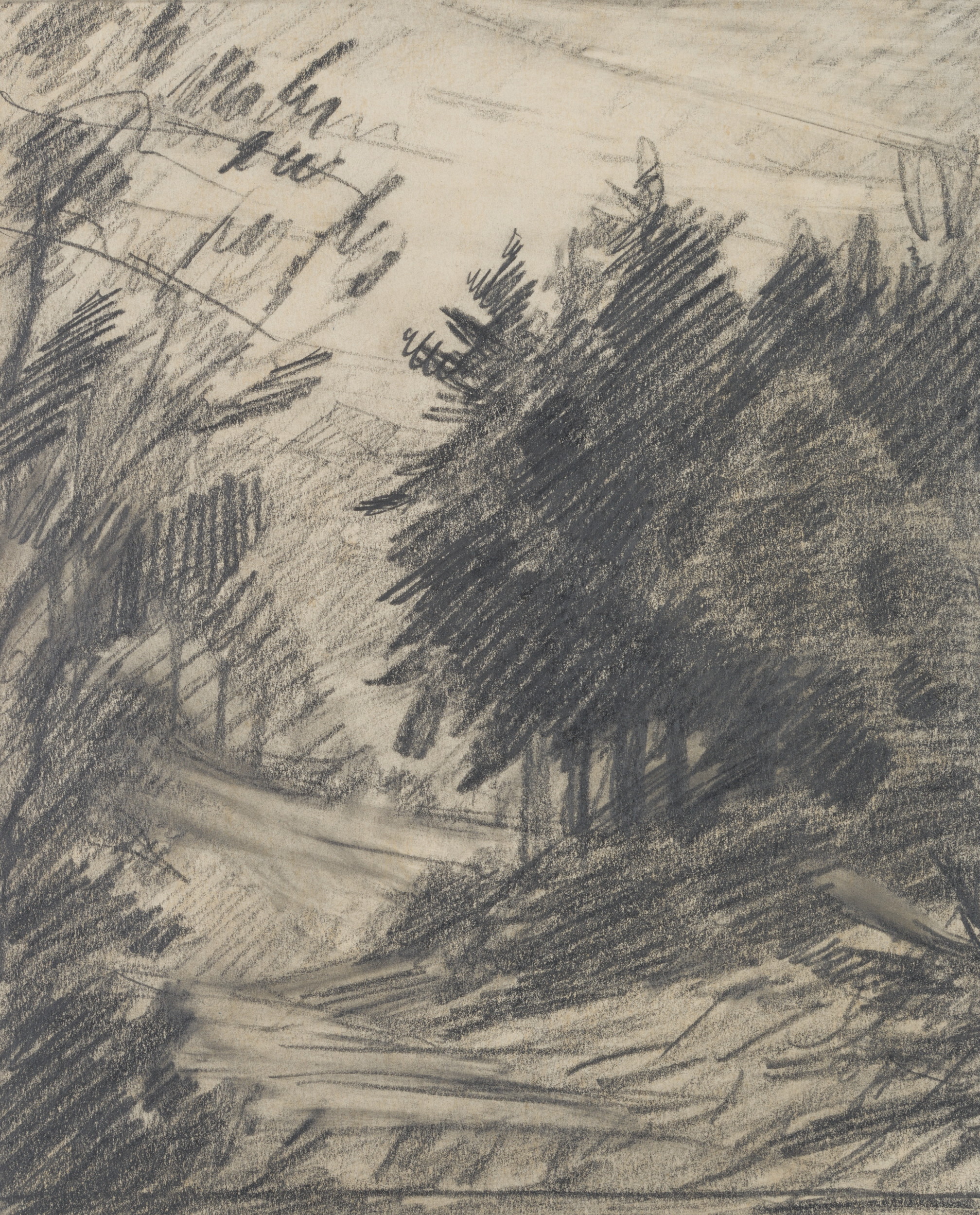 Rolf Winter (1881 Kronberg – 1968 ebd.), Waldstück mit Schneise, , Kohle