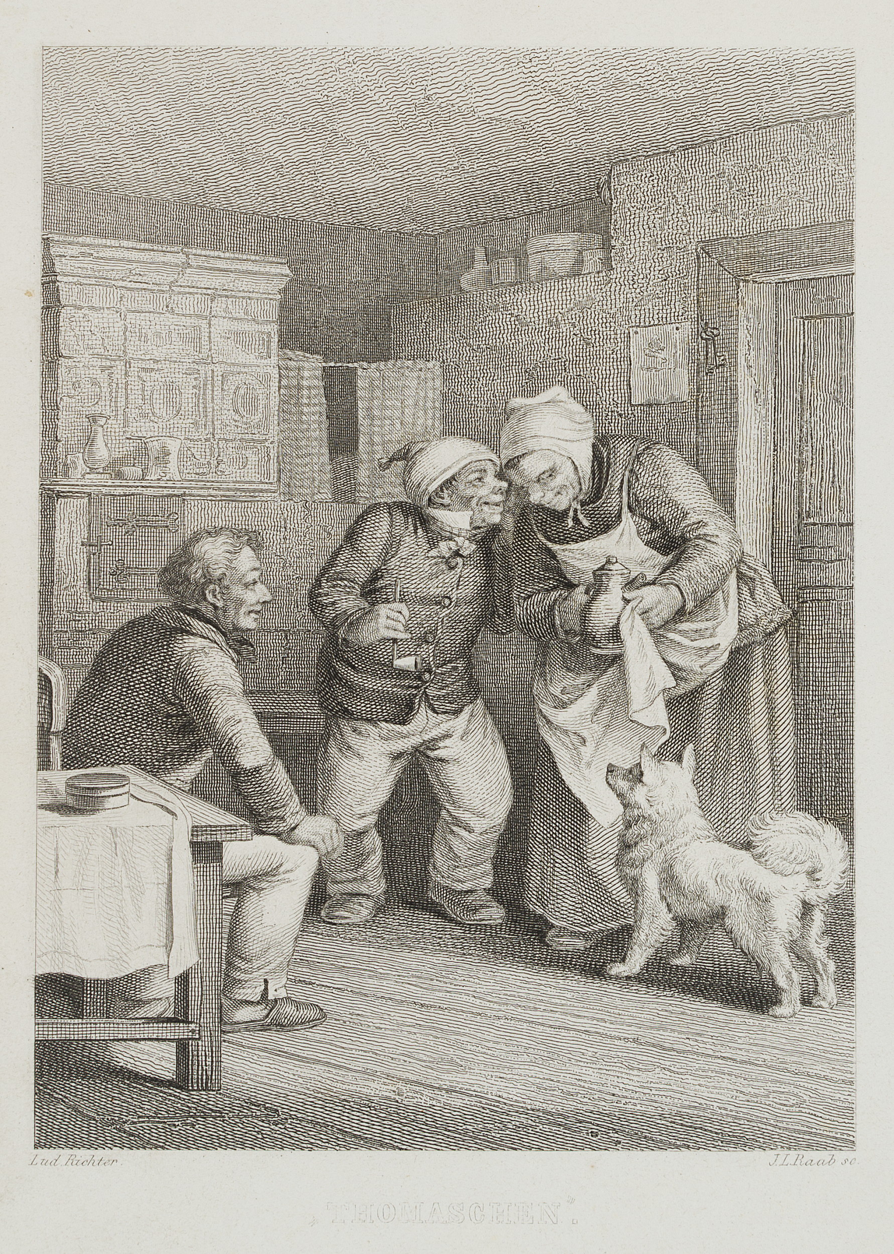 Johann Leonhard Raab (1825 Schwaningen – 1899 Munich) after Ludwig Richter (1803 Dresden – 1884 ibid.), Tomaschen, Inked on the Tiled Stove, 1858, Etching