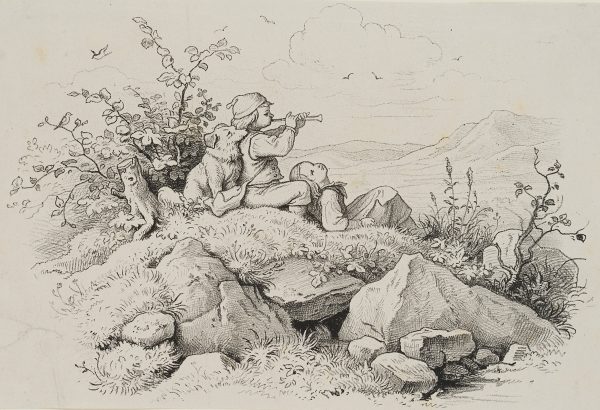 - Schlagworte: Natur, Landschaft, Frieden, Musik, Hirte, Knabe, Mädchen, Trachten, Genre, Deutschland, Romantik, 1850-1899
