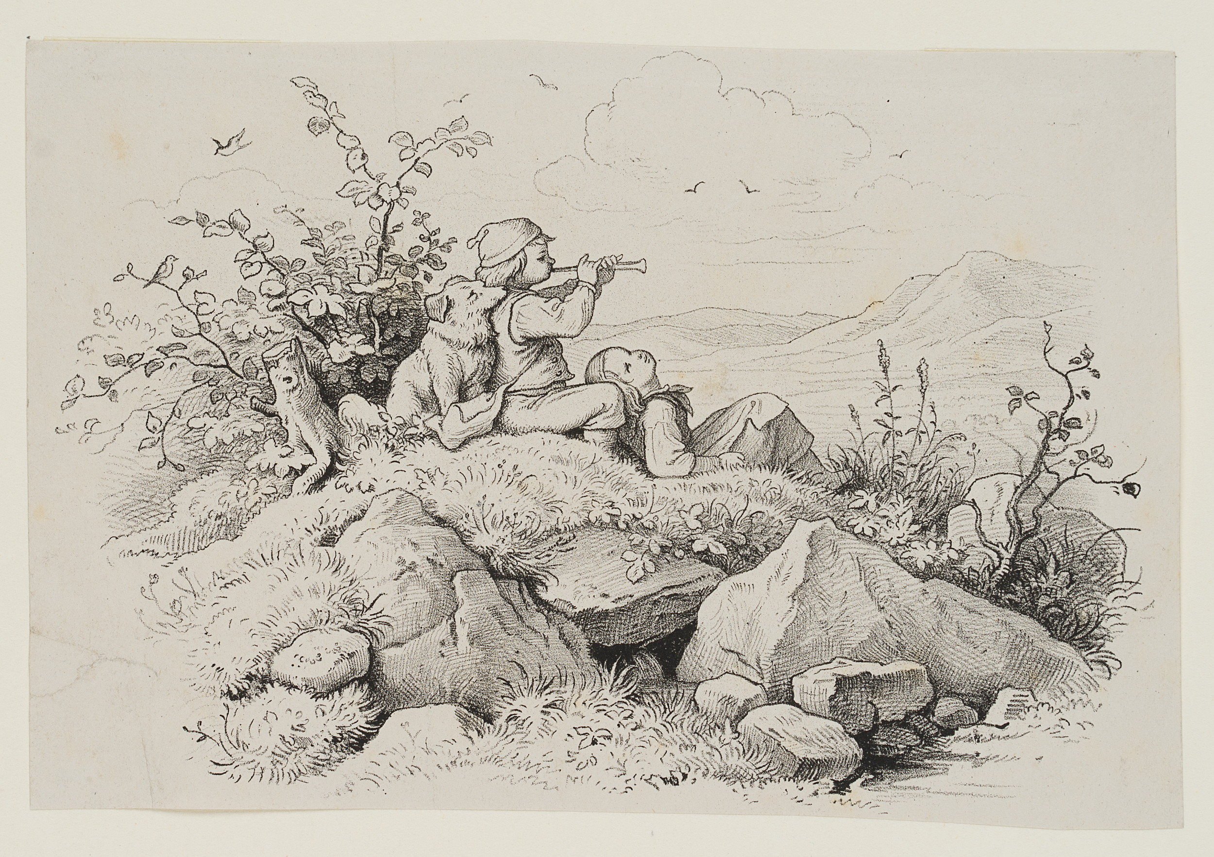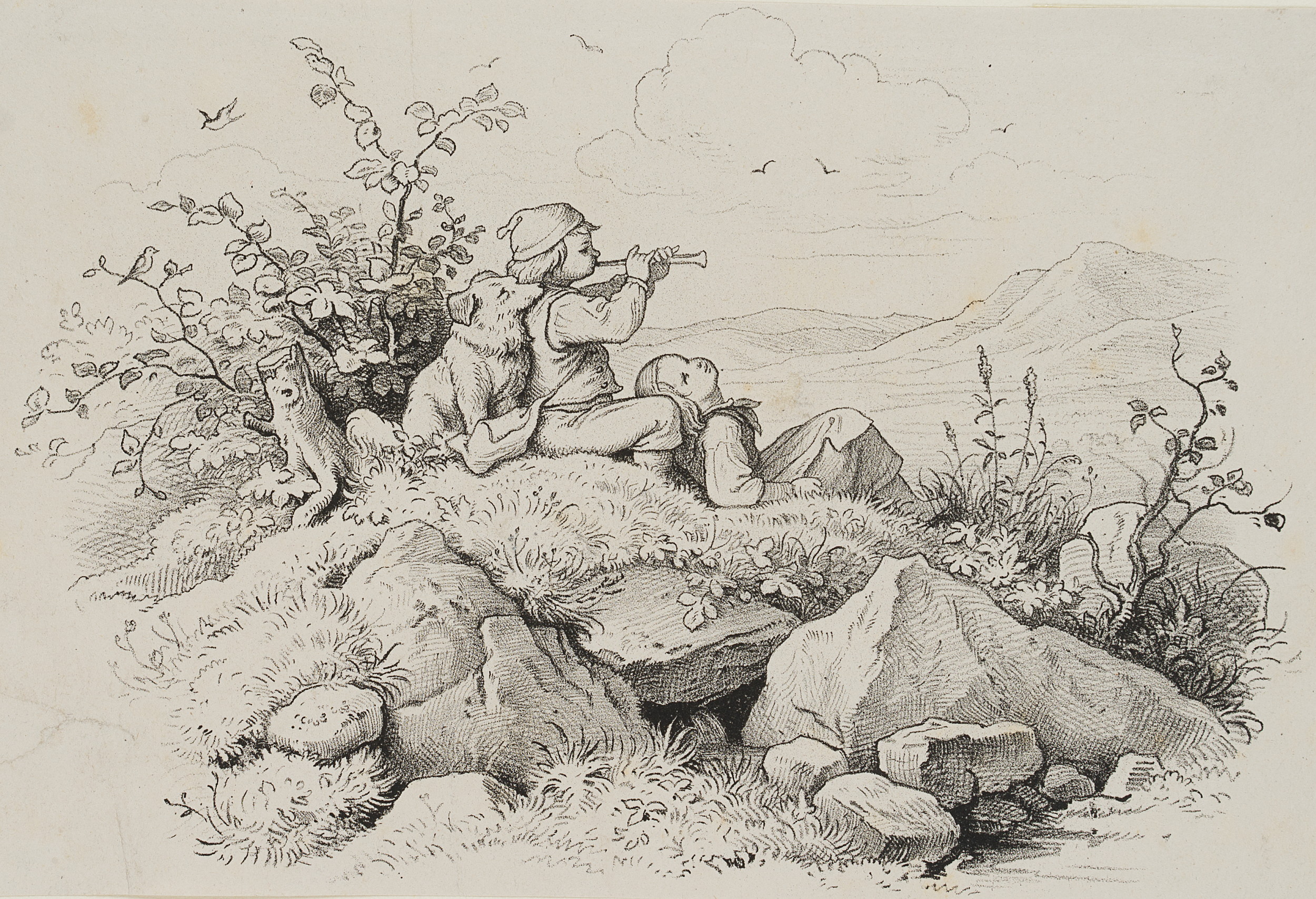 - Keywords: Nature, Landscape, Peace, Music, Shepherd, Boy, Girl, 19th century, Romanticism, Costumes, Germany,