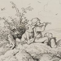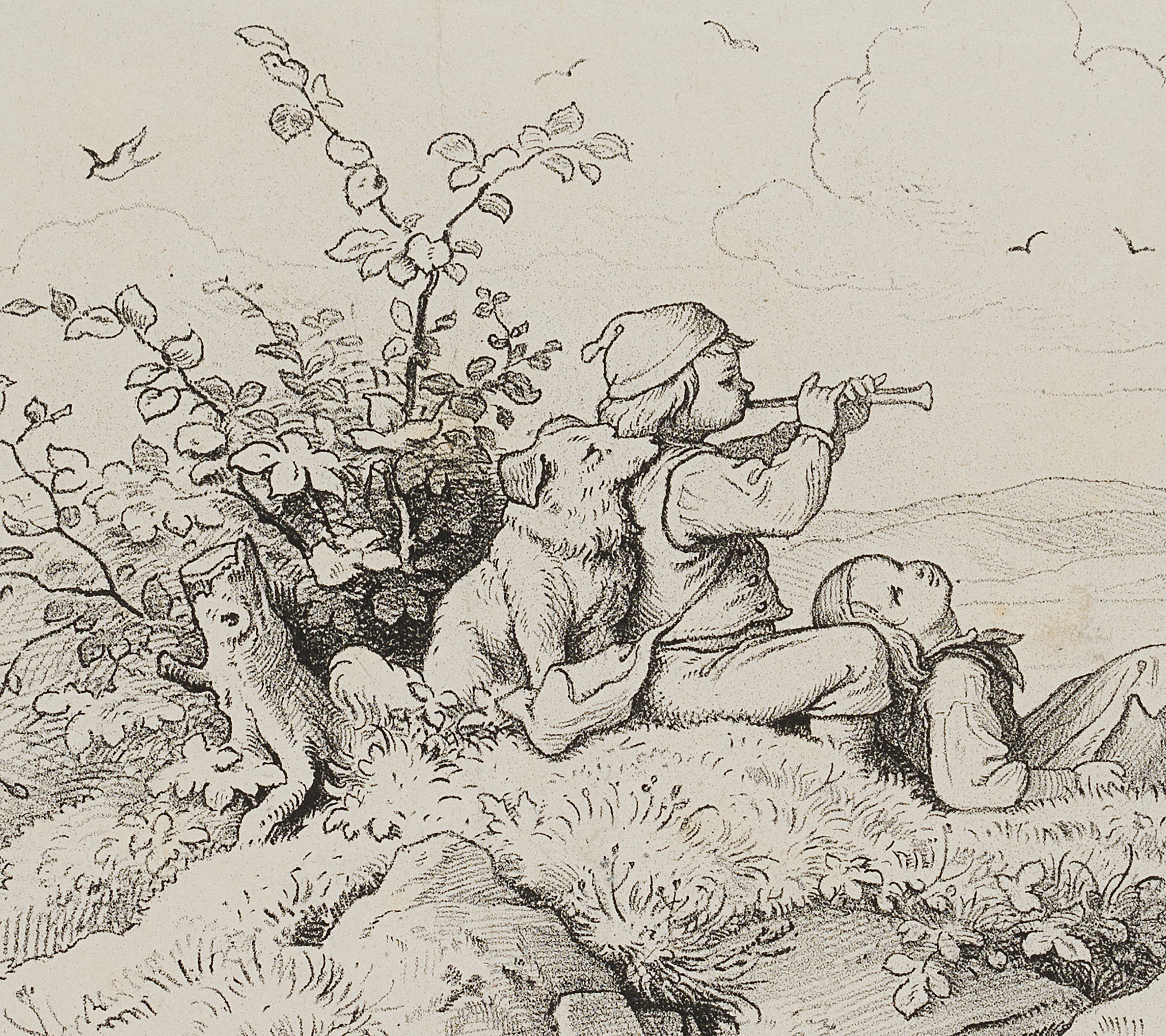 Woldemar Rau (1827 Dresden – 1889 ibid.) after Ludwig Richter (1803 Dresden – 1884 ibid.), Boy playing music with girl, 1857, Lithography