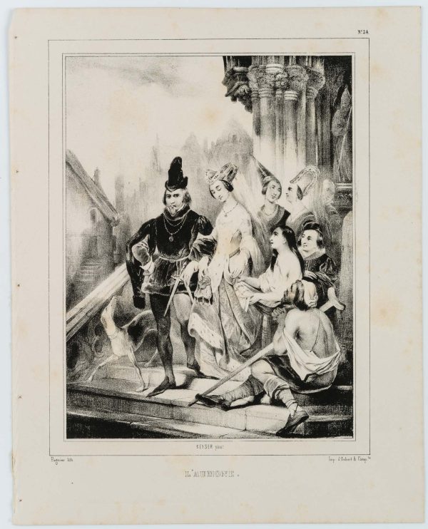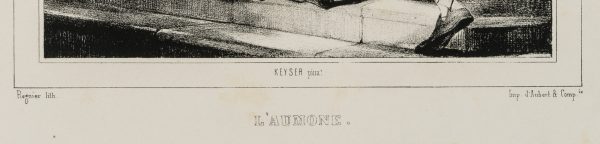 - Bezeichnung: Unterhalb der Darstellung betitelt und bezeichnet: “Regnier lith. / KEYSER pinxt. / Imp. d’Aubert & Comp.ie”. Rechts oberhalb der Darstellung nummeriert: “No. 34”
