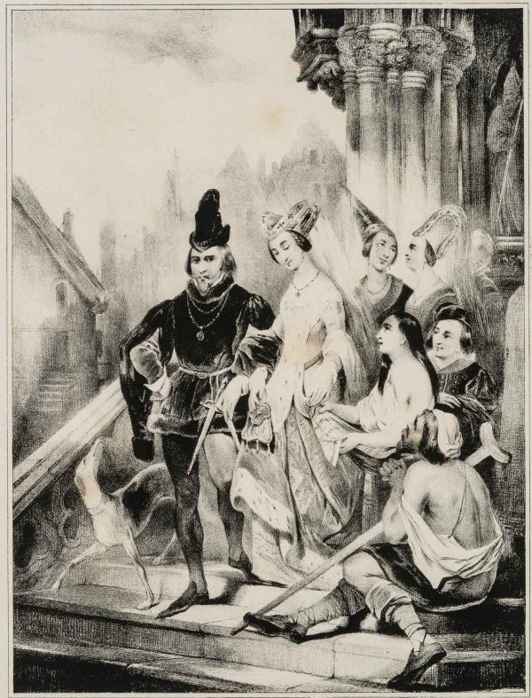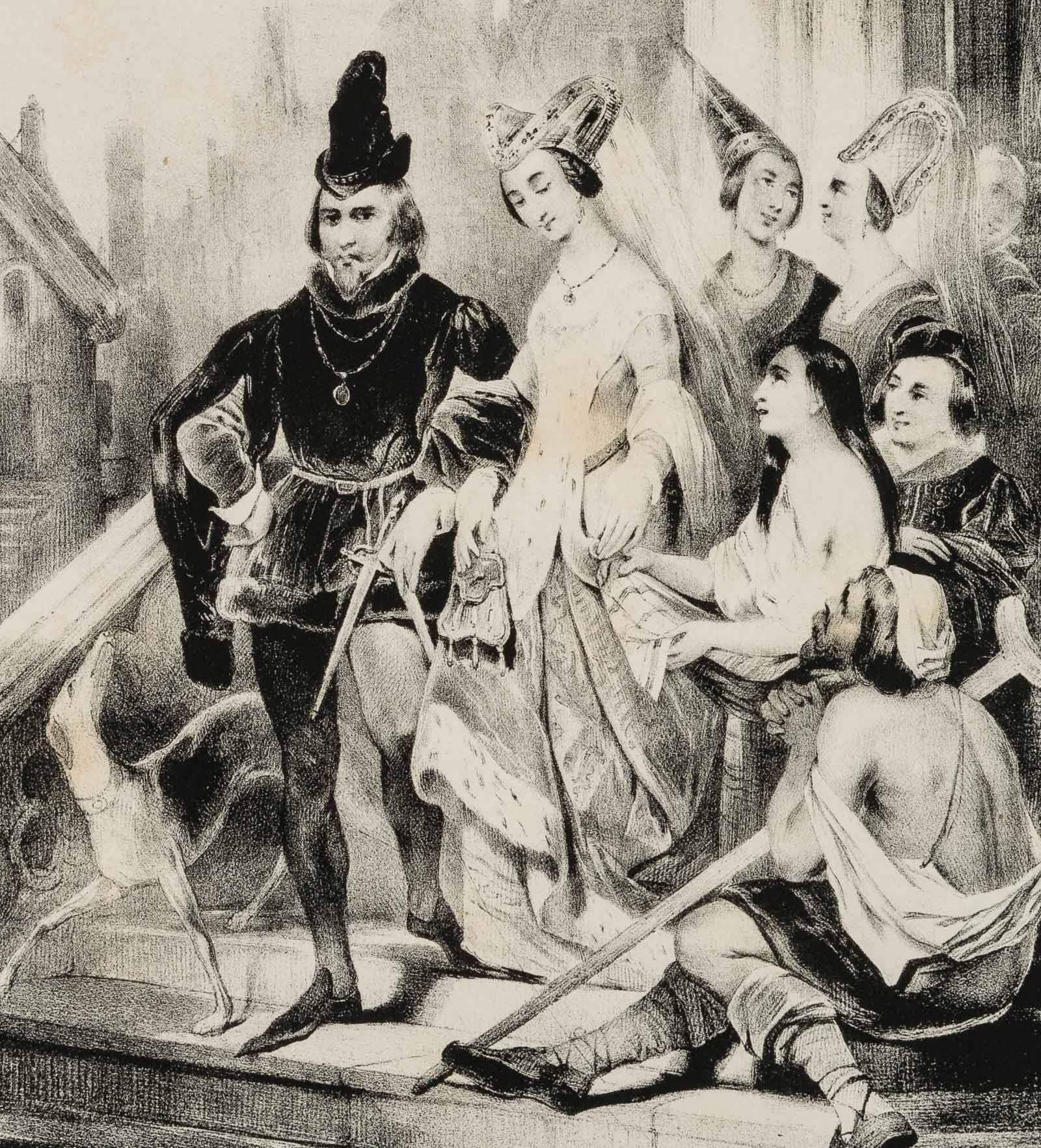 Conder Claude Regnier (19. Jahrhundert) nach Thomas de Keyser (um 1596 – 1667 ), ” l’Aumône”, Almosen, 19. Jahrhundert, Lithographie