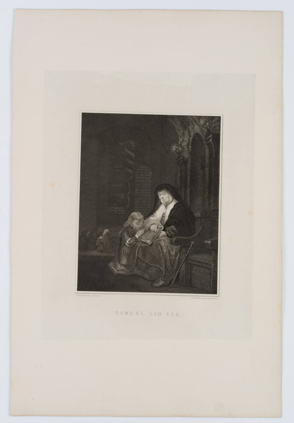 - Schlagworte: Samuel, Hanna, Mutter, Sohn, Tempel, Dunkelheit, Licht, Lichtspiel, helldunkel, Bibelillustration, Religiös, Biblisches, Großbritannien, Barock, 1800-1849