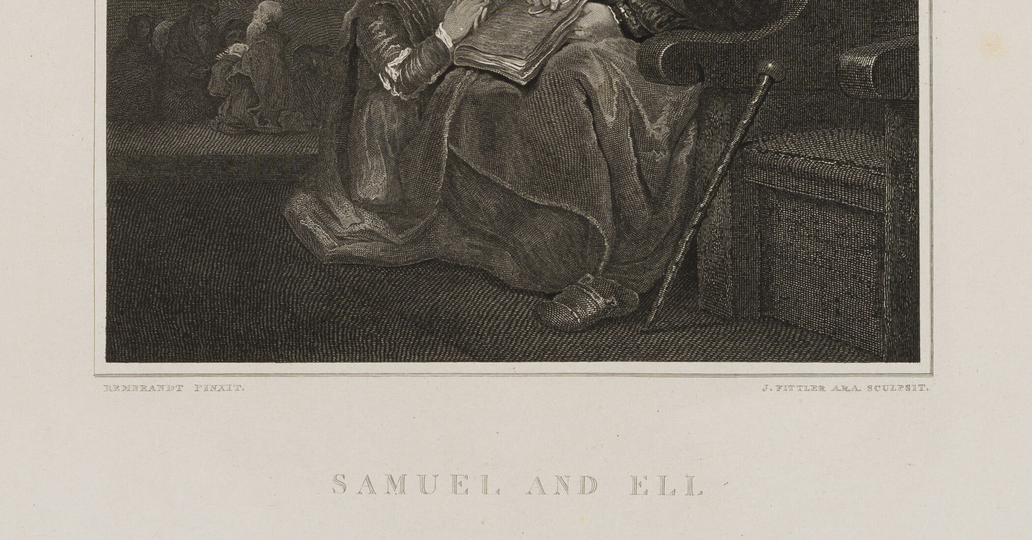 Rembrandt: Rembrandt Harmenszoon van Rijn (1606 Leiden – 1669 Amsterdam) nach James Fittler (1758 – 1835 ), FITTLER; REMBRANDT, ‘Samuel and Eli’, Bibelillustration, 1808, Radierung