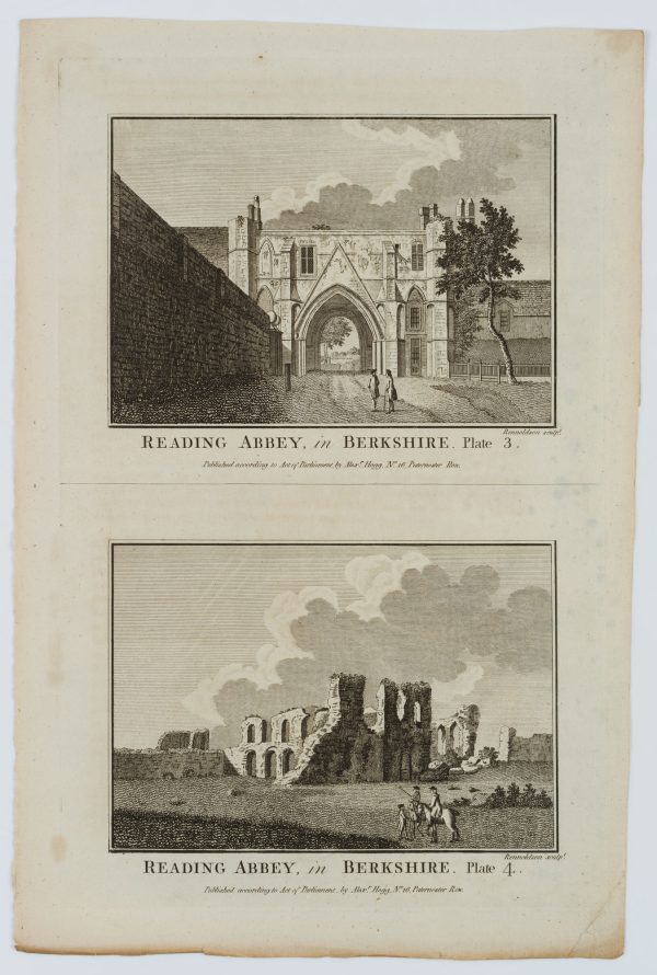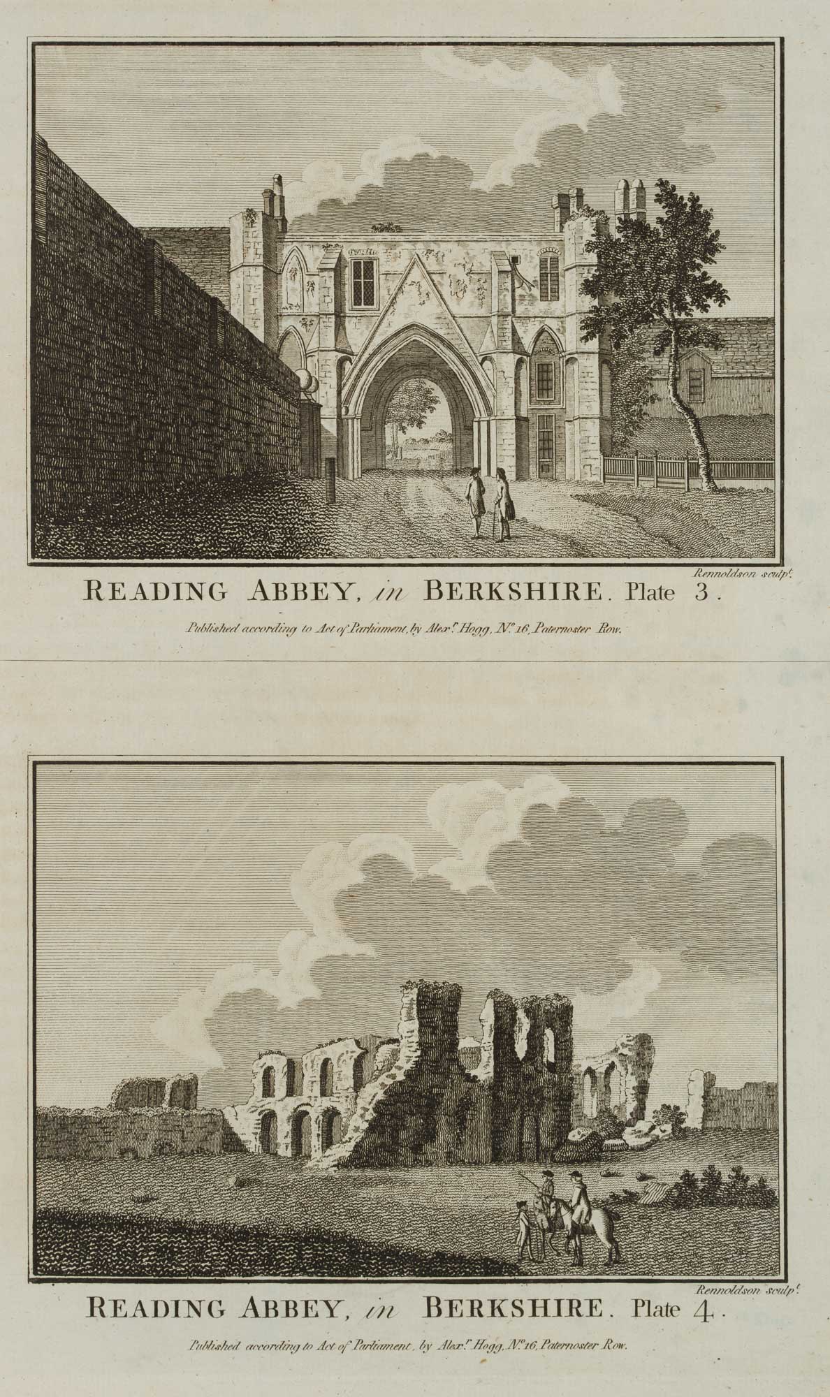 Rennoldson (18th century), Two architectural and landscape depictions: “Reading Abbey, in Berkshire Plate 3”, “Reading Abbey, in Berkshire Plate 4”, c. 1786, Etching