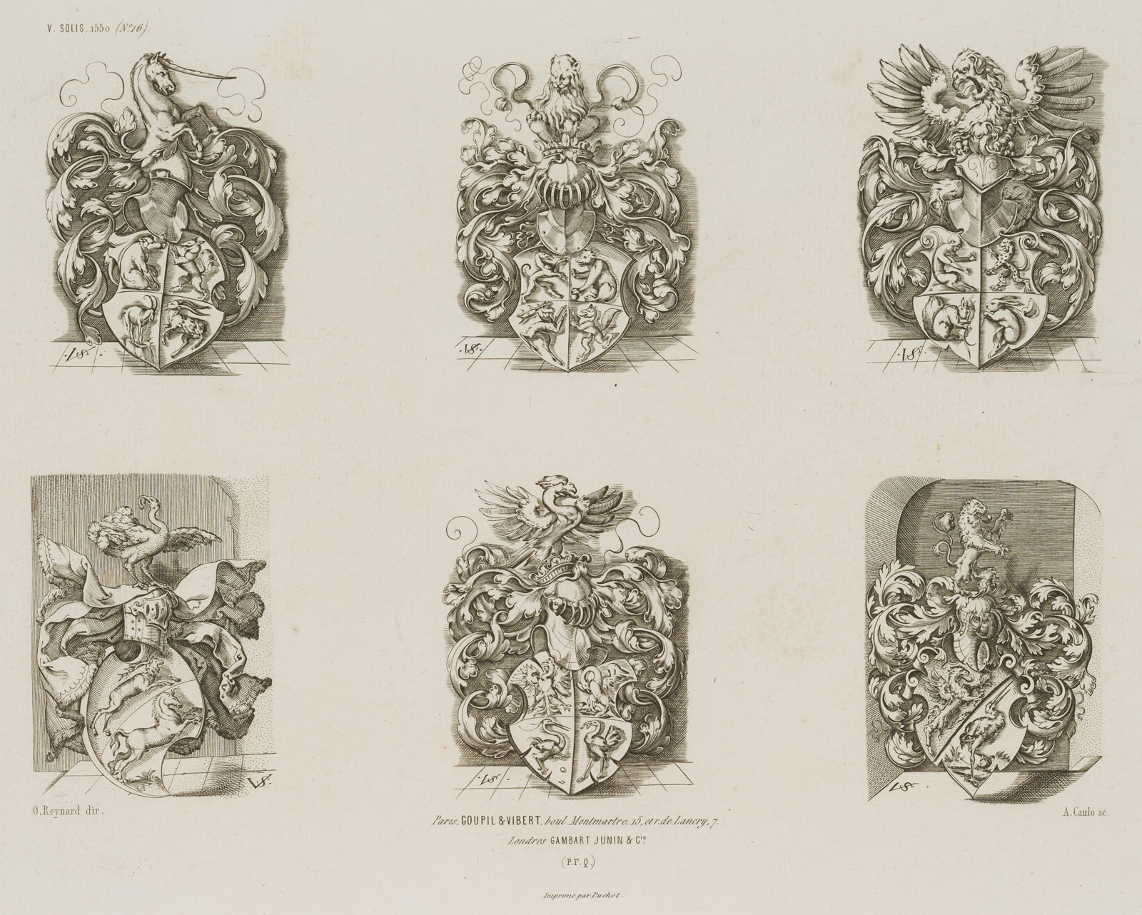 REYNARD (*1817) nach CAULO (19.Jhd), 6 versch. Wappenmotive nach SOLIS,