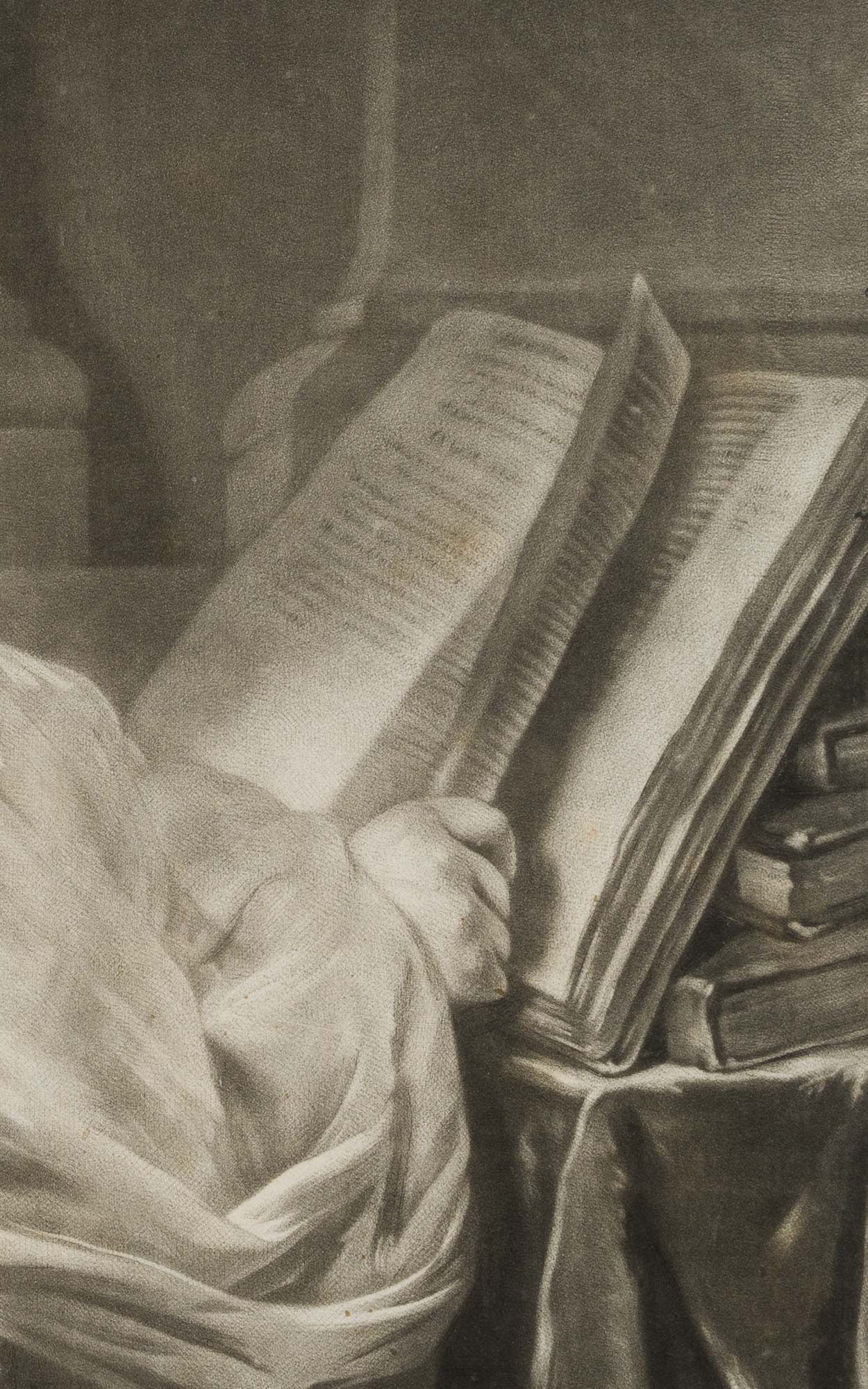 - Technik: Mezzotinto auf Büttenpapier, montiert auf Papier