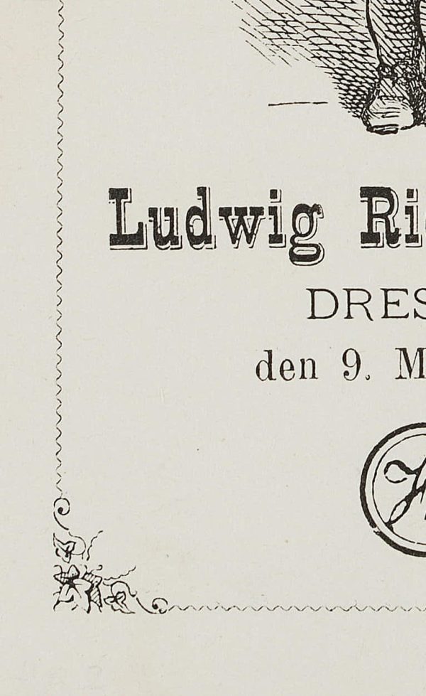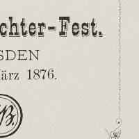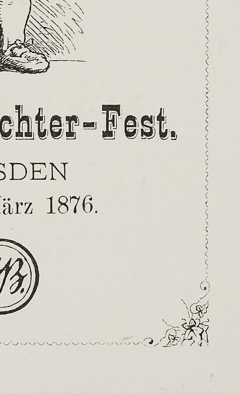 - Inscription: Lower middle monogrammed (ligated): “HB”. At the lower part inscribed in the printing plate: “Ludwig Richter-Fest. Dresden den 9. März 1876”.