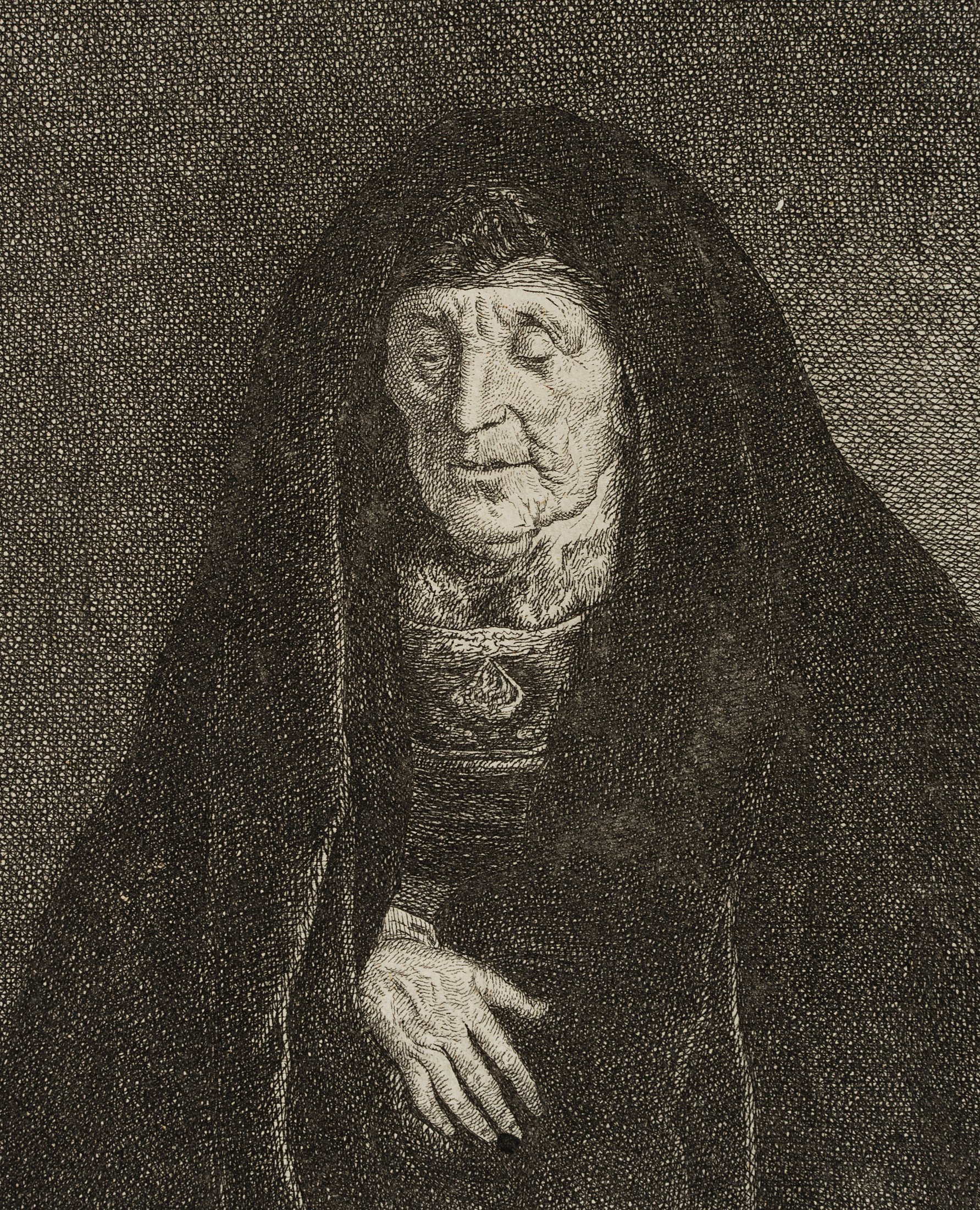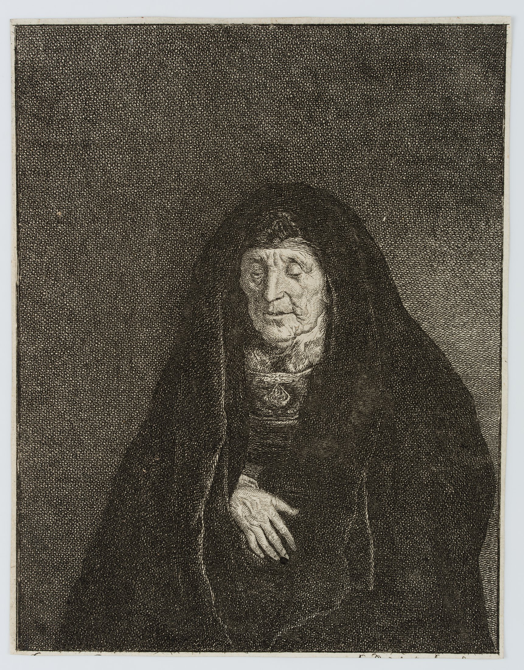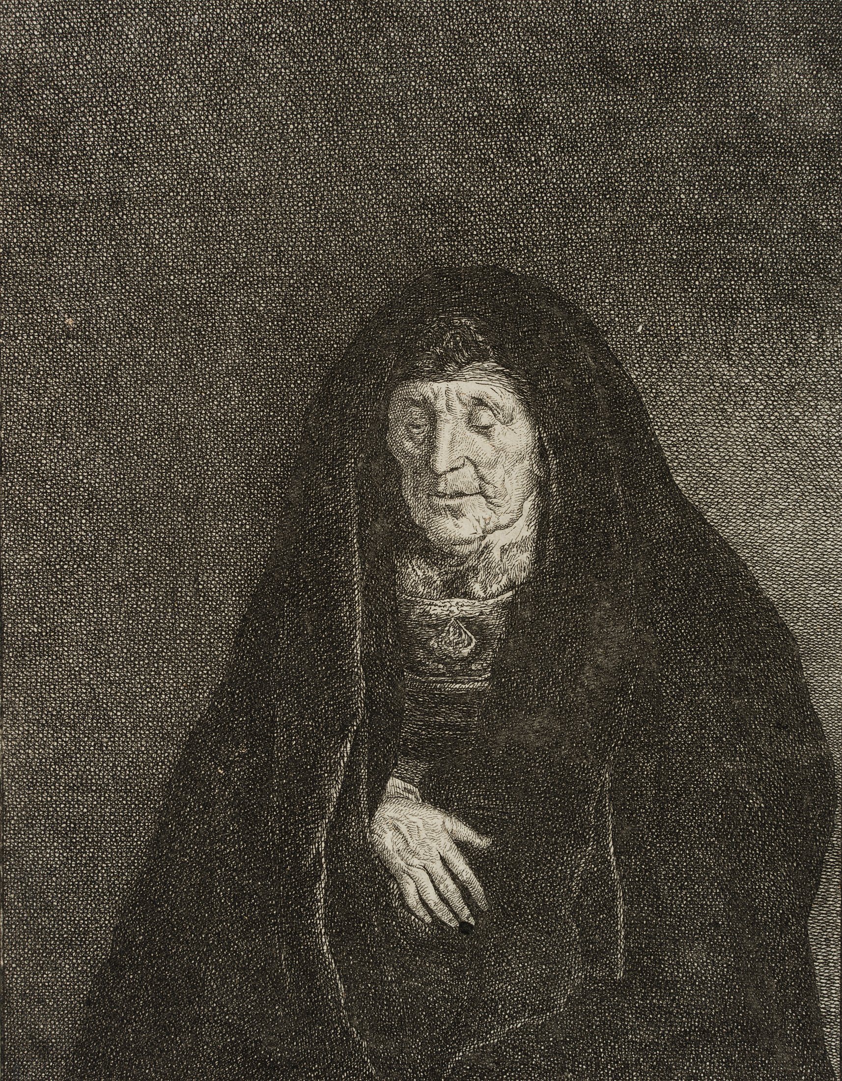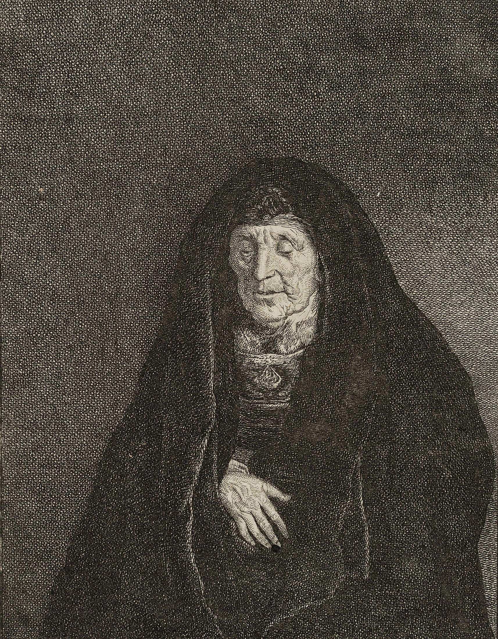 Johann Anton Riedel (1736 Falkenau – 1816 Dresden) after Rembrandt: Rembrandt Harmenszoon van Rijn (1606 Leiden – 1669 Amsterdam), Veiled old woman, Rembrandt’s mother?, 1755, Etching