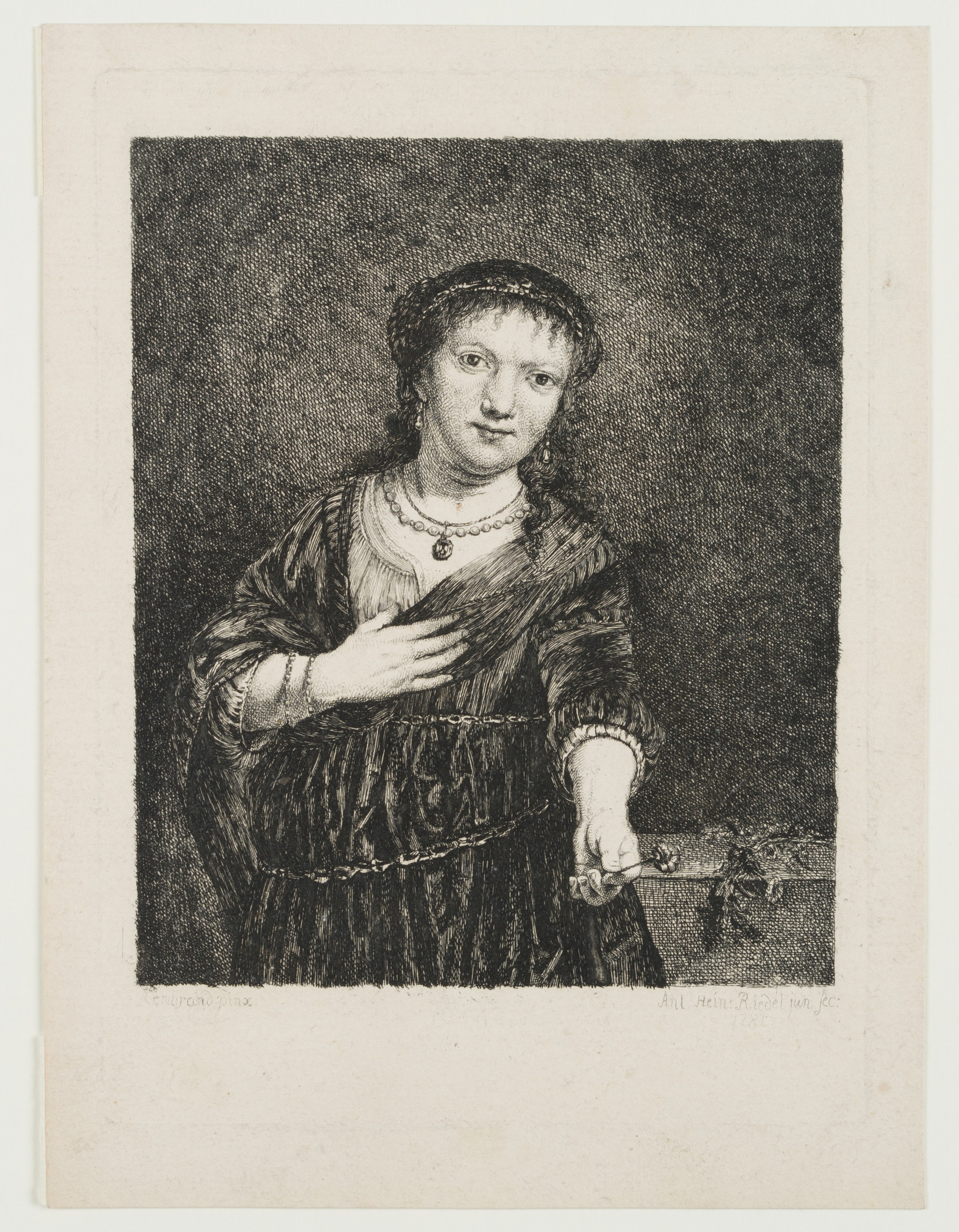 Anton Heinrich Riedel (born 1763 Dresden) after Rembrandt: Rembrandt Harmenszoon van Rijn (1606 Leiden – 1669 Amsterdam), Saskia van Uylenburgh as Flora, 1781, Etching