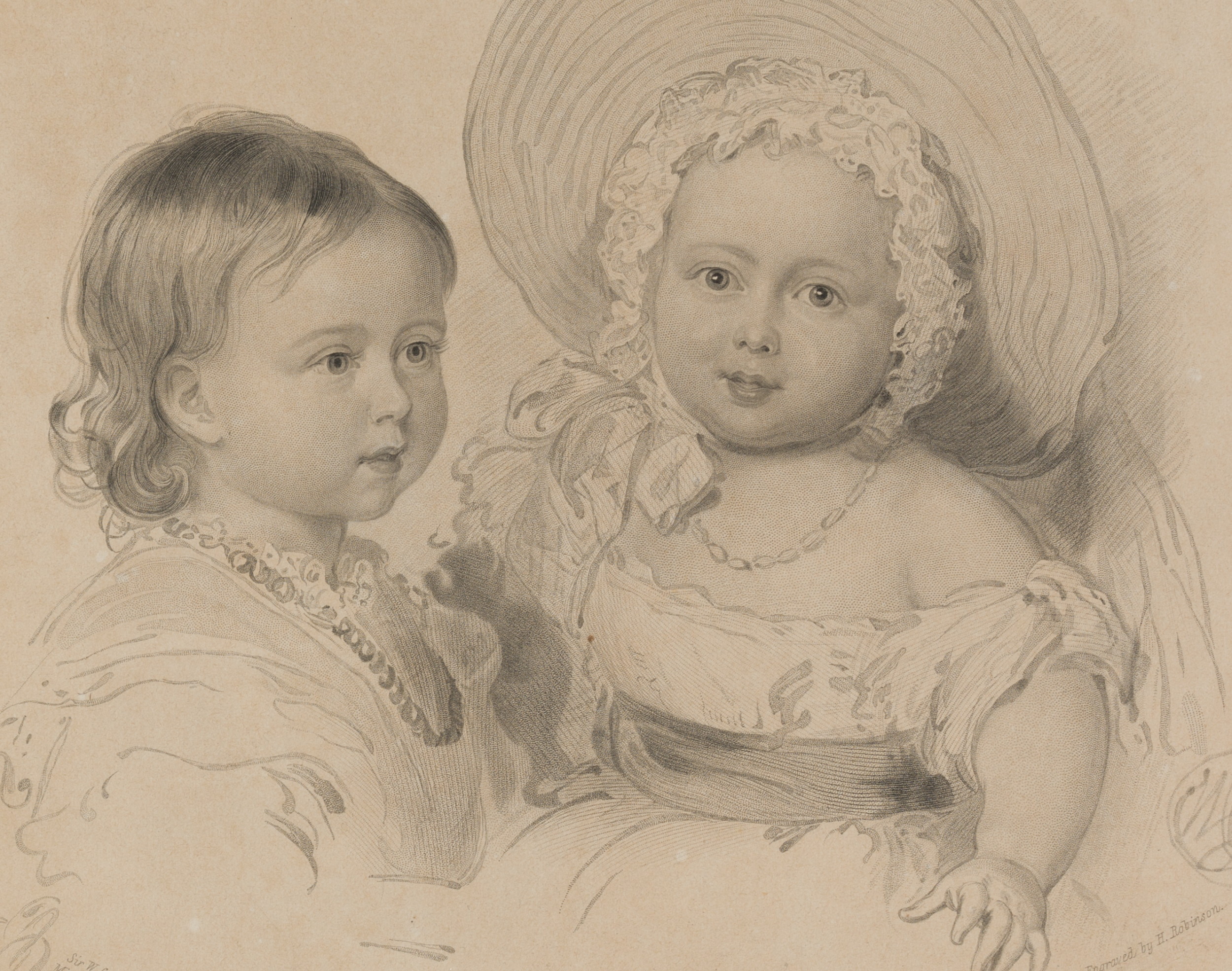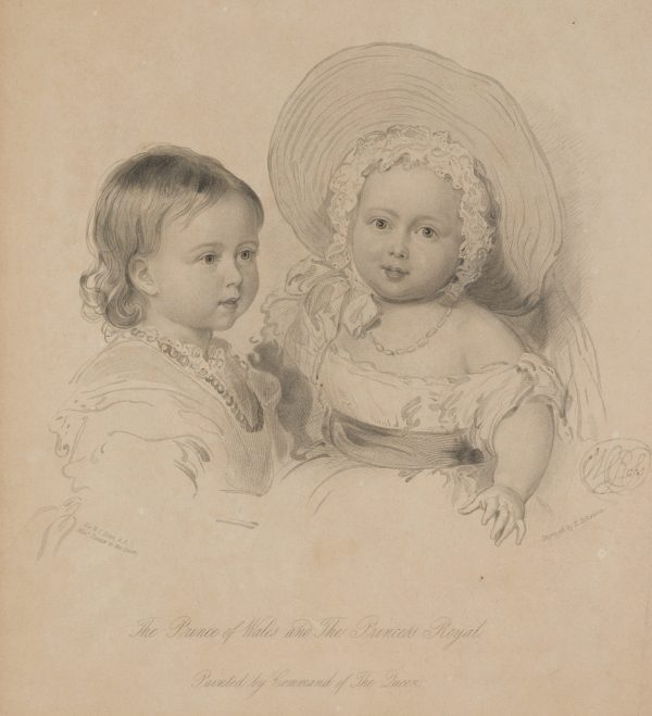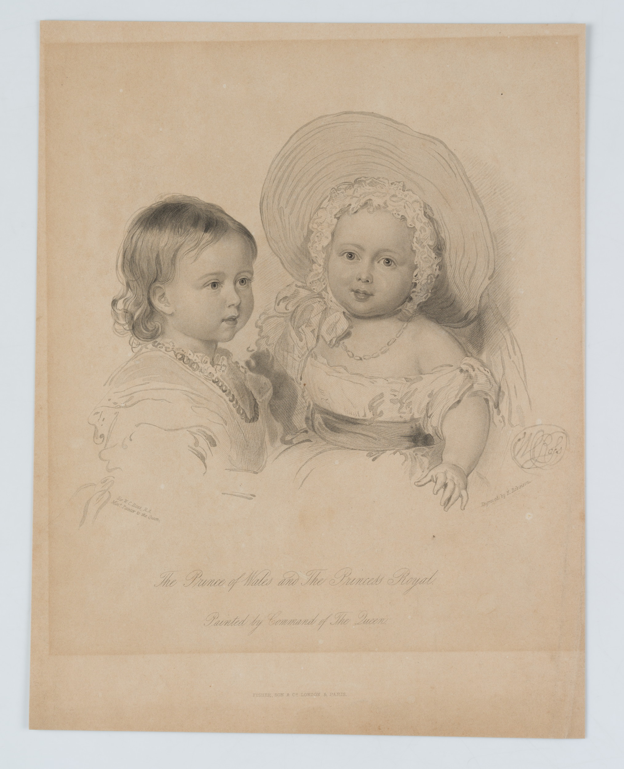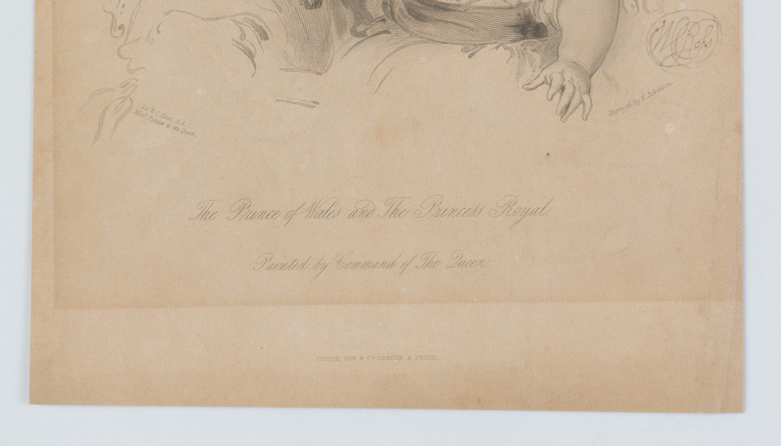 - Inscription: Lower middle signed in the printing plate: “Sir W. C. Ross, R. A. Mine Painter to the Queen | Engraved by H. Robinson”. Lower middle inscribed in the printing plate: “The Prince of Wales and the Princess Royal. Painted by Command of the Queen”.