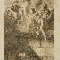 Johann Matthias Schröckh (1733 Vienna – 1808 Wittenberg) was a German historian and literary scholar, poet and physician; illustration to Schröckh’s “Allgemeiner Weltgeschichte für Kinder” (General World History for Children), which he published in four parts in Leipzig from 1779 to 1784. He regarded his “Weltgeschichte” as a kind of reading book for children with descriptions from ancient history, religious history and German as well as European history, which were illustrated with numerous copperplate engravings after drawings by Bernhard Rode. Rode’s illustrations beautifully demonstrate his ability to visually realise special or unusual historical and literary themes without being able to fall back on models. - Date: 18th century